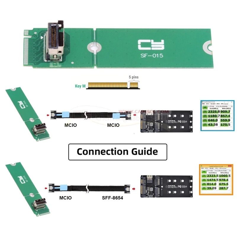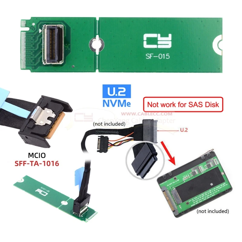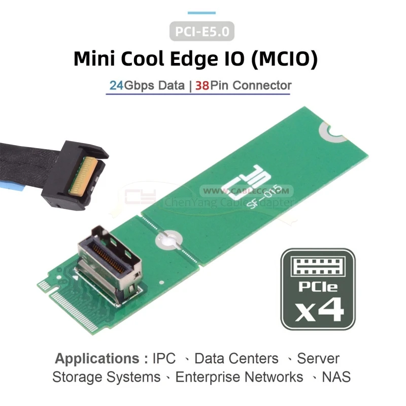 CY PCI-E 5,0 4,0 M.2 M-key a MCIO Mini Cool Edge IO Adaptador de host hembra para PCIe Nvme SSD 2280 2230