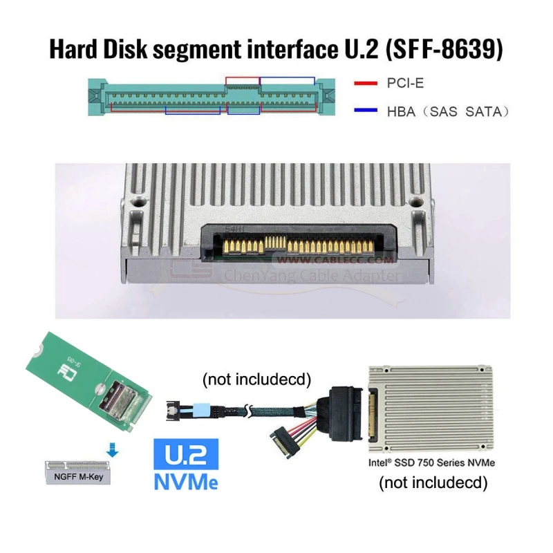 PCI-E 5,0 4,0 M.2 M-key a MCIO Mini Cool Edge IO Adaptador de host hembra para PCIe Nvme SSD 2280