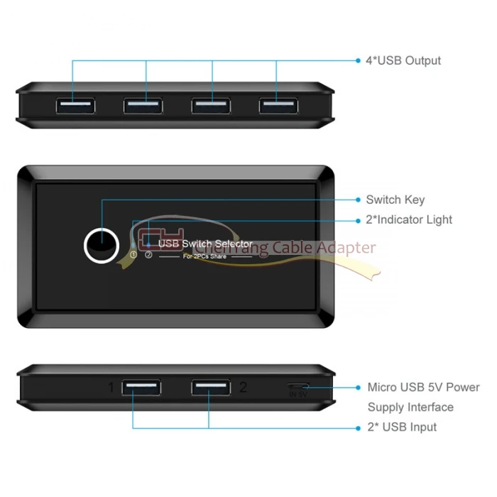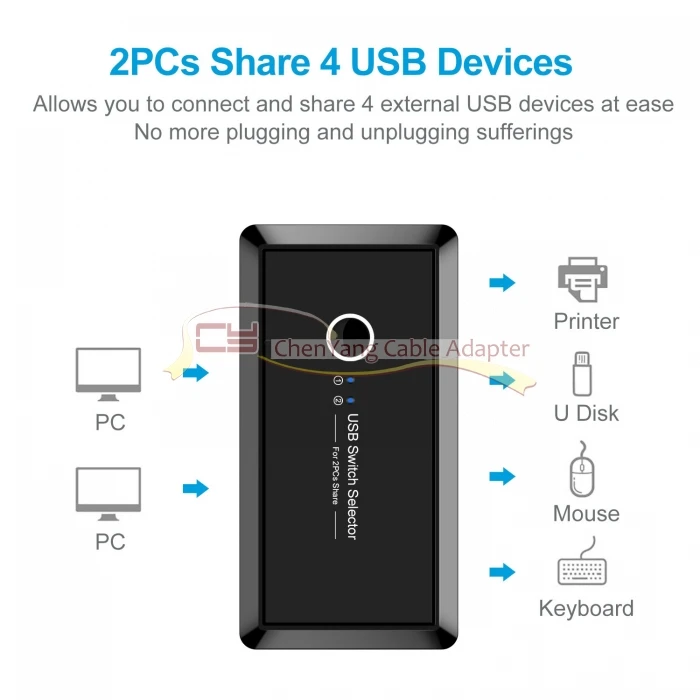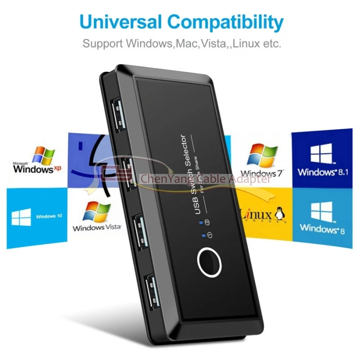 Selector de conmutador KVM USB 2,0 o USB 3,0, 2 puertos, uso compartido de la piezas, 4 Dispositivos para impresora de escáner de teclado y ratón