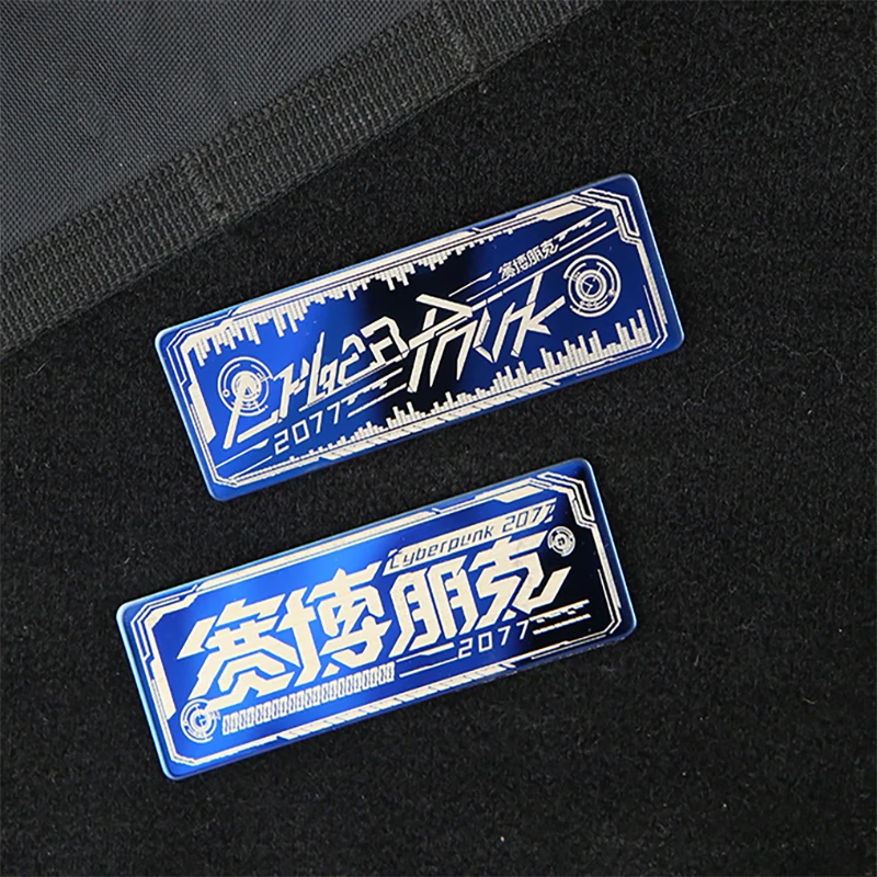 Cyberpunk-insignia de moral de Metal con láser mecánico, pegatina decorativa para mochila, brazalete táctico, parche de gancho y bucle azul de Metal