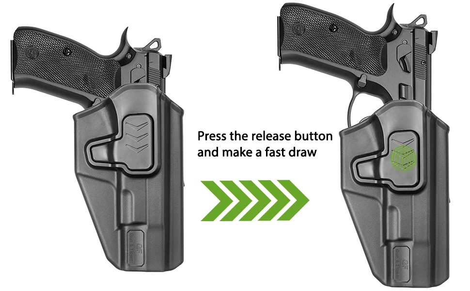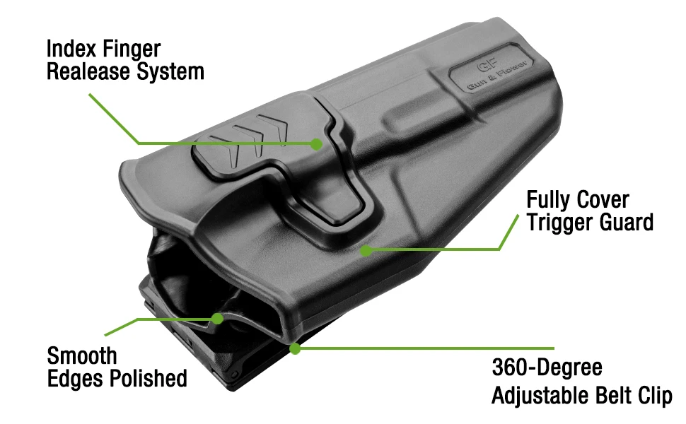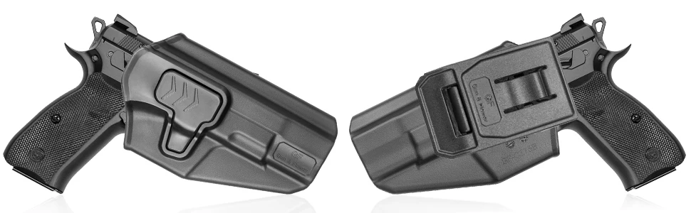 Cant es ajustable en 360 grados con una llave Allen, lo que le permite inclinar la funda perfectamente para el apêndice, en la cadera, detrás de la cadera o cordón cruzado.