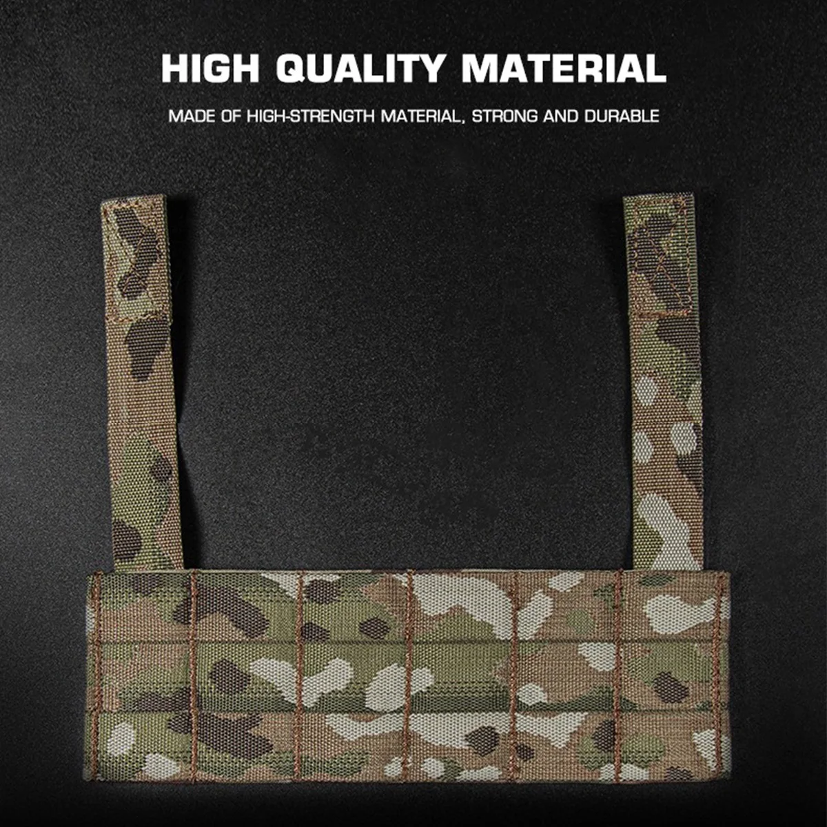 Dobla las tiras de corte en las correas del pecho en la parte posterior de la tabla MOLLE y en su propia correa MOLLE.Es conveniente instalar todo tipo de subbolsas de tamaño MOLLE para colgar en el pecho.