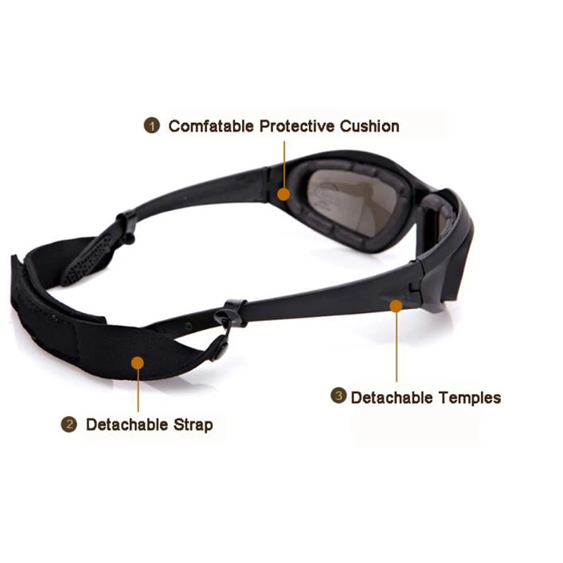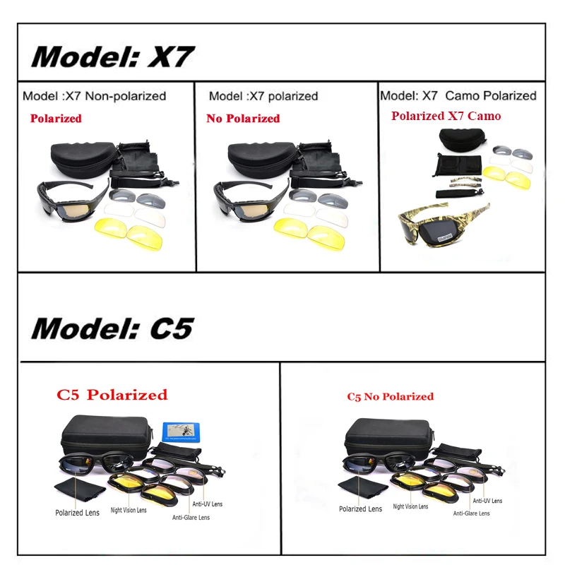 Atributo de la lente: 4 lentes, polarizadas o no polarizadas (opción), antideslumbrantes, UVA/UVB, visión nocturna;