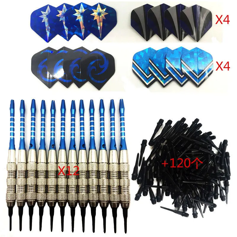 12 Uds. Dardos de eje de aleación de aluminio profesionales de 18g con 120 Uds. Puntas de dardos punta suave Dardos ejes de aluminio Dardos vuelos de dardos