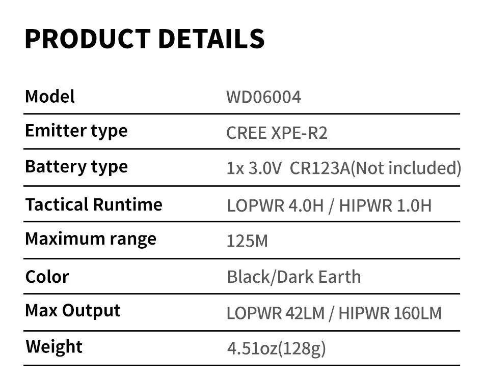 Batería: 1 unidad 16340 de 3,7 V (sin batería incluida)