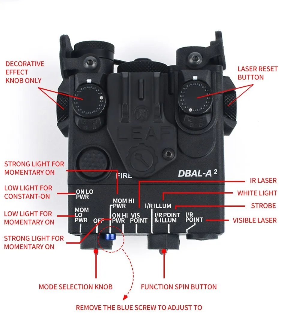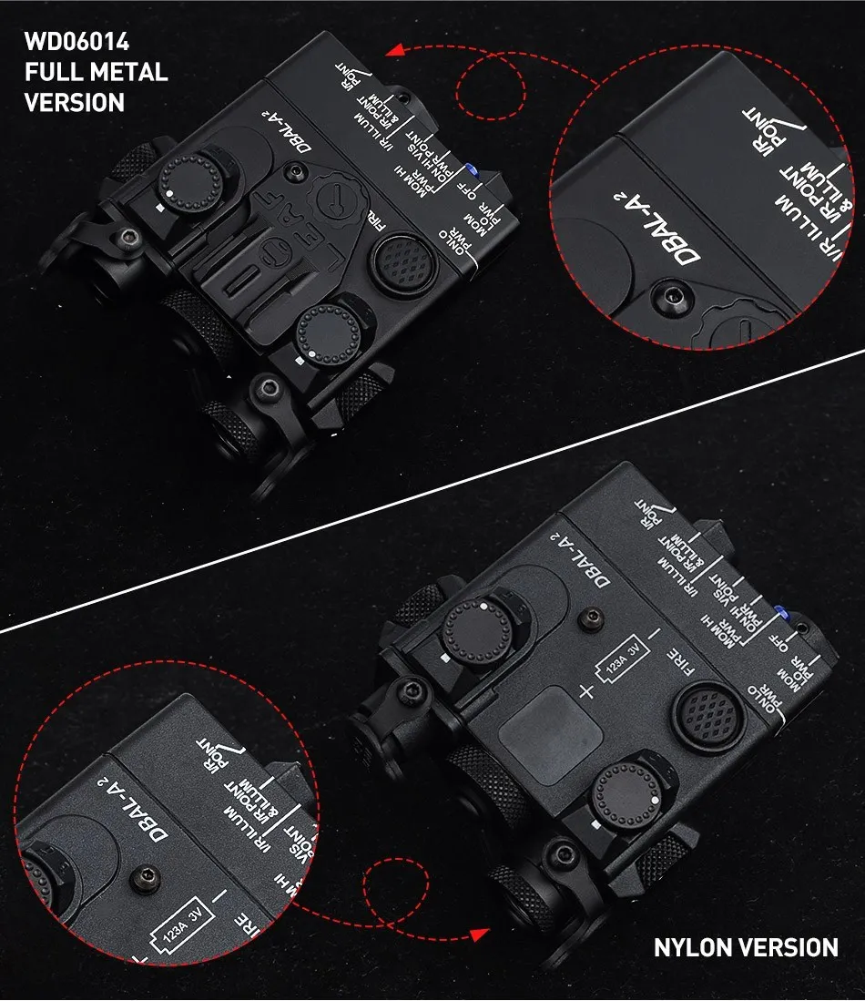 Airsoft DBAL-A2 verde azul rojo punto láser puntería luz estroboscópica blanca LED WADSN caza IR luces de visión ajuste DBAL PEQ Picatinny Rail