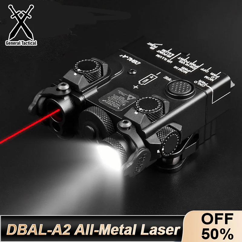 DBAL-A2 táctico totalmente metálico, punto rojo, verde, azul, indicador LED estroboscópico IR, apto para riel de 20mm, Láser de caza Airsoft