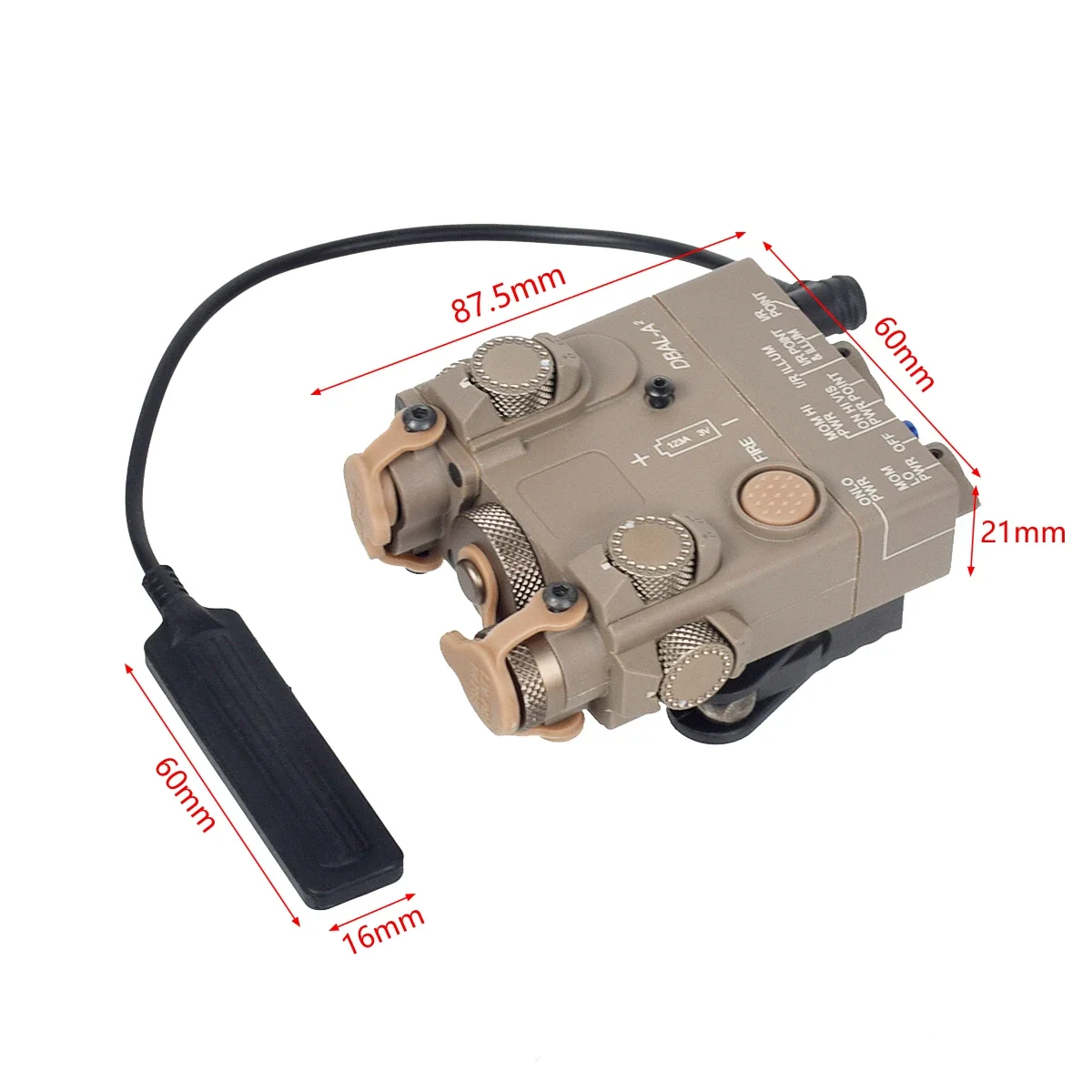 Interruptor de botón integrado y activación del interruptor de almohadilla de presión del cable remoto: toque y suelte para una activación momentánea; toque dos veces para encender continuamente 5 minutos