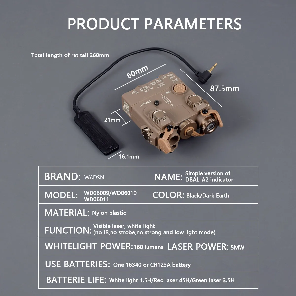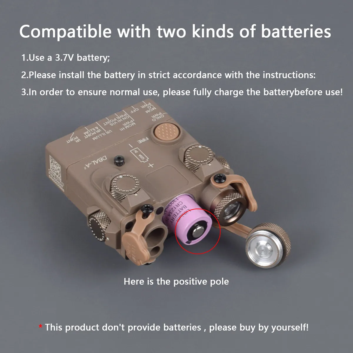 Nota: Para que funcione normalmente, sugerimos utilizar una batería recargable 16340 (3,7 V), porque si usa la batería CR123, la tasa de consumo de energía será muy rápida, lo que hará que el equipo no pueda usarse normalmente.