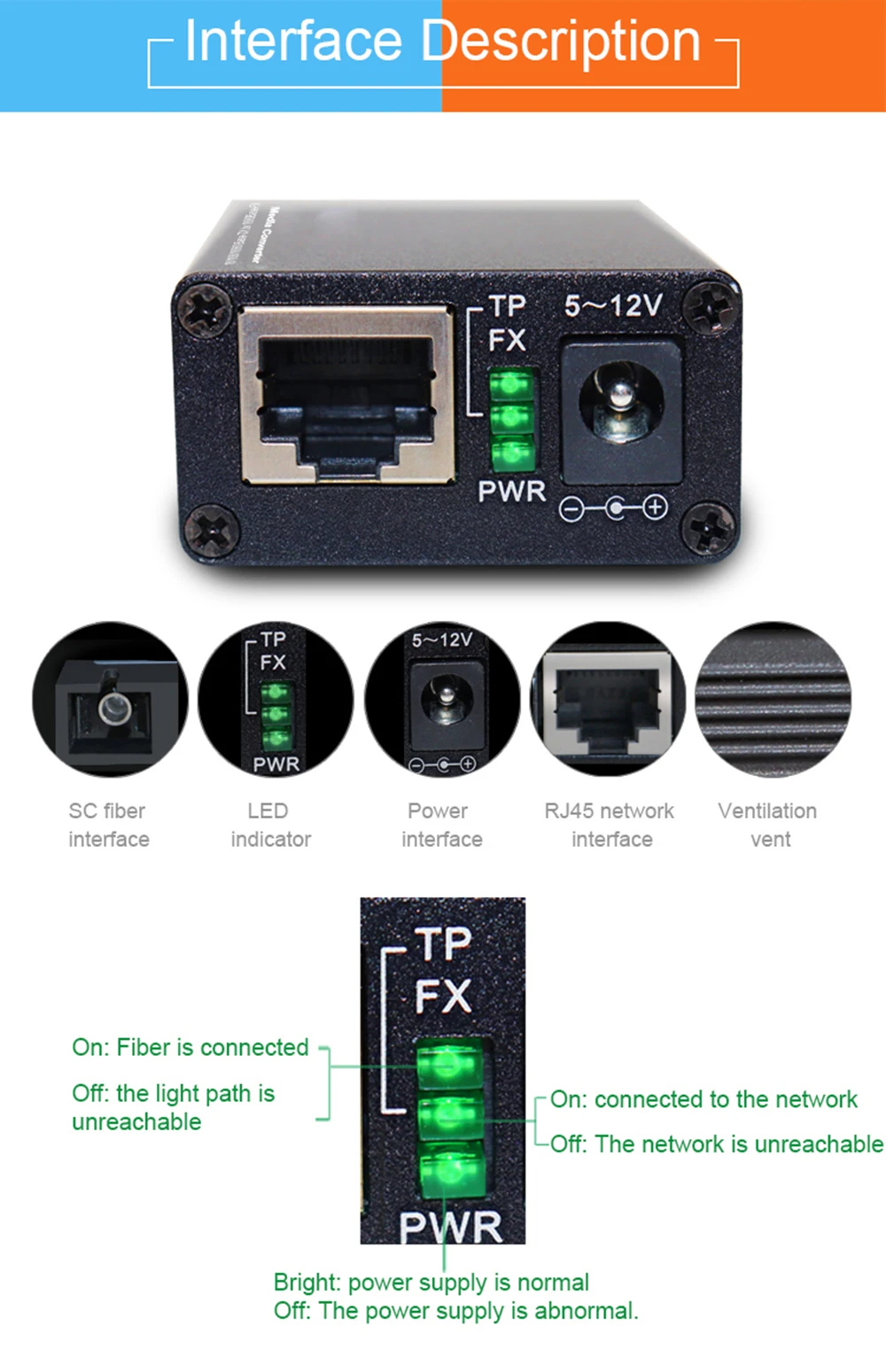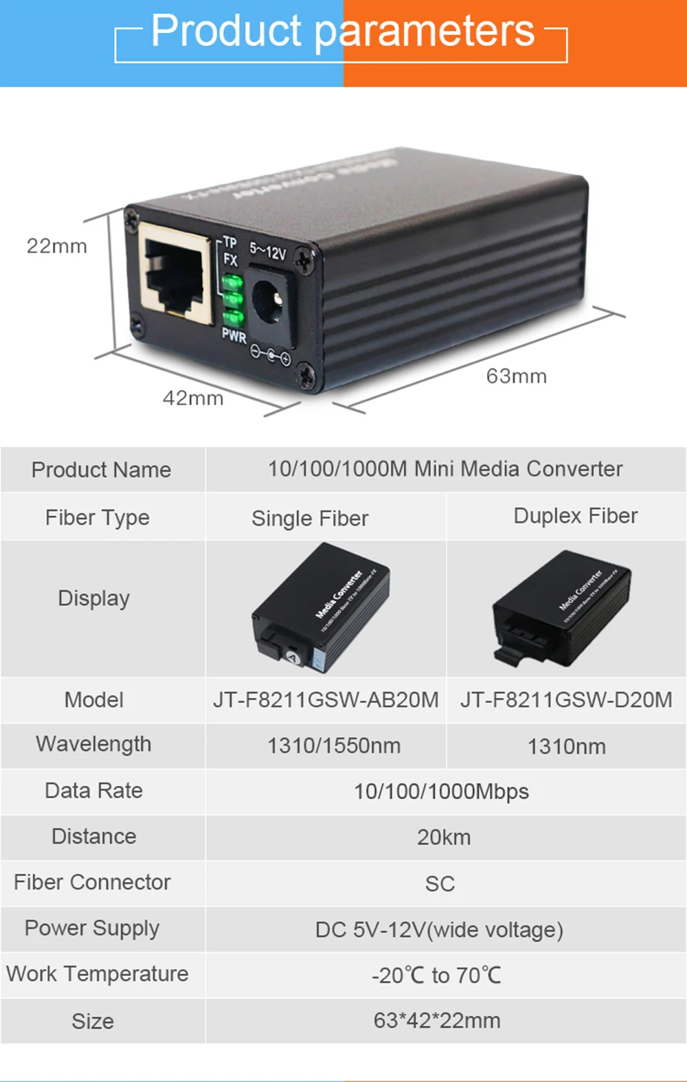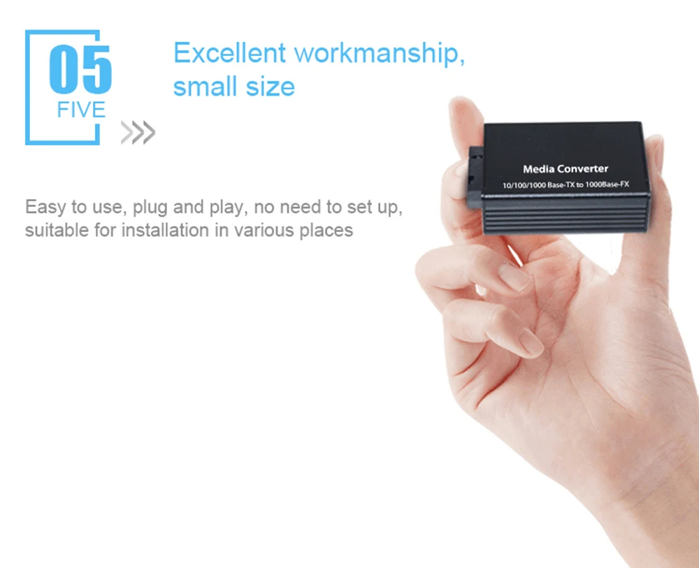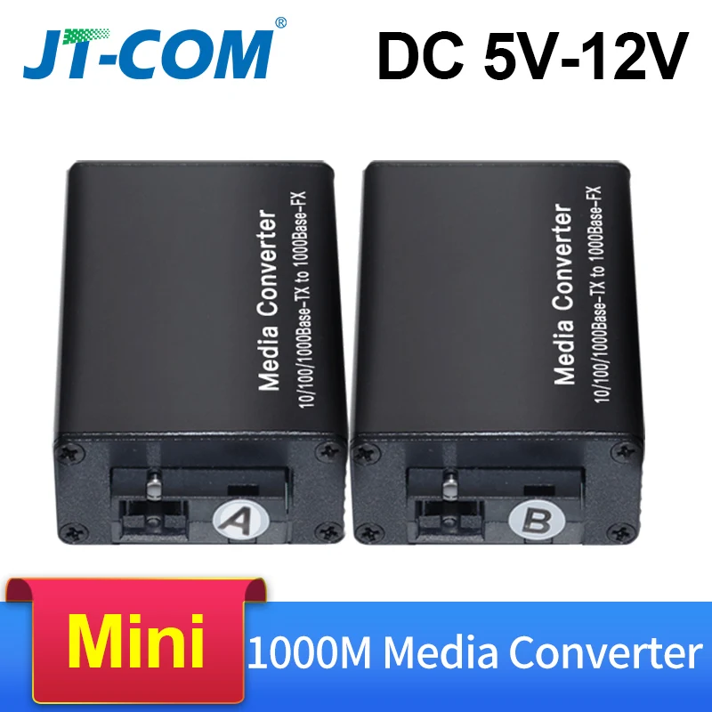 DC 5V-12V 20KM 1000M Mini convertidor de medios Gigabit fibra óptica a RJ45 interruptor Ethernet monomodo transceptor óptico SM SC FTTH