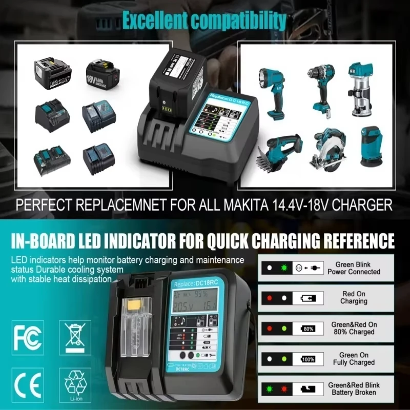 Cargador de batería de iones de litio DC18RC 3A para Makita 18V 14,4V BL1860B,BL1850B,BL1840,BL1830,BL1820,BL1415,BL1440 Cargador de herramientas eléctricas