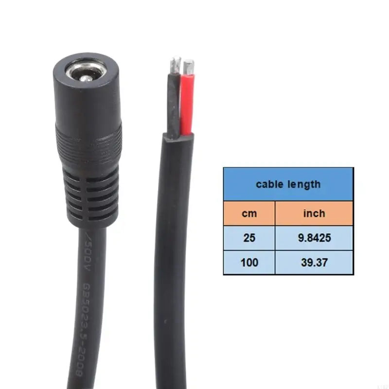 Los extremos del cable preestañado con aislamiento codificado por colores (rojo para positivo, negro para negativo) garantizan una instalación sencilla y una alineación adecuada de la polaridad en configuraciones de conectores de barriles de 5,5x2,5 mm.