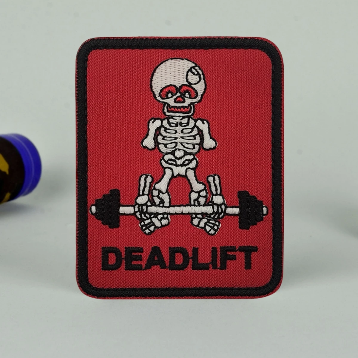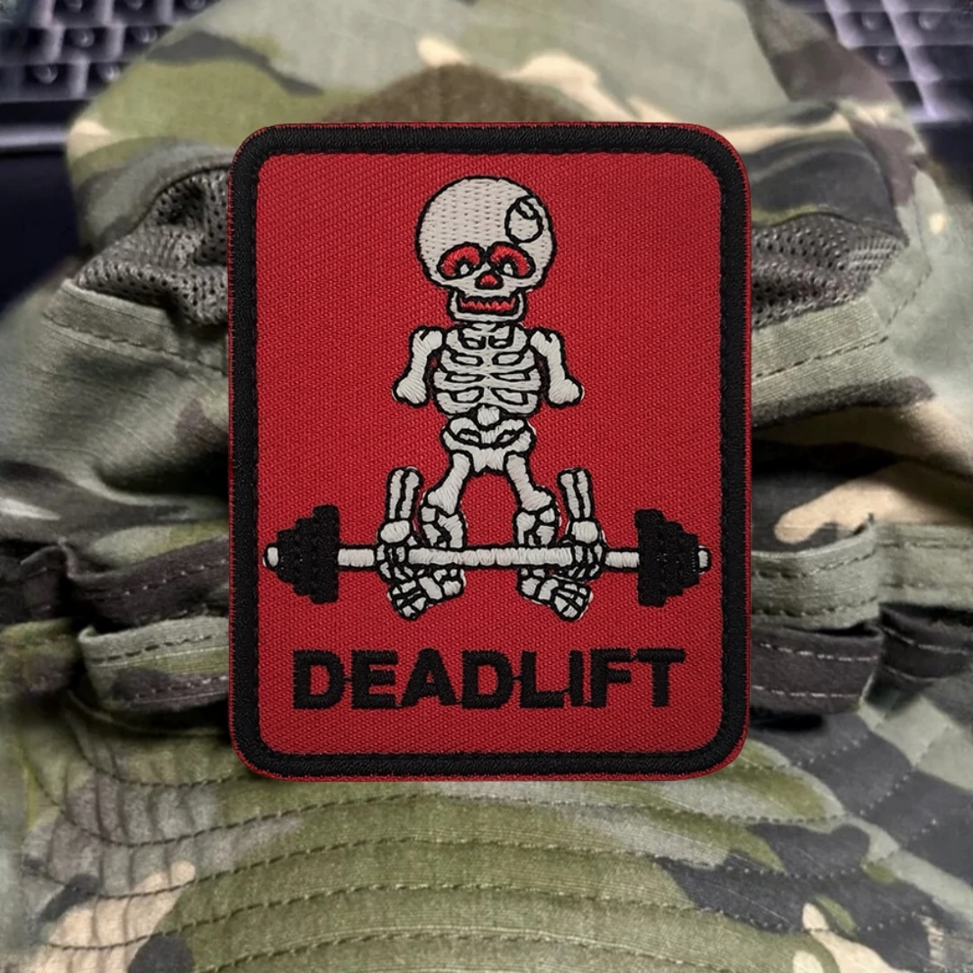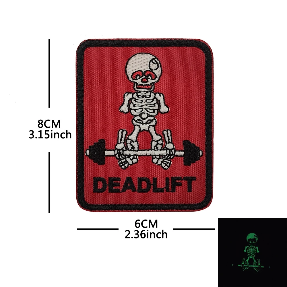 DEADLIFT-Parche de luz nocturna con esqueleto para Fitness, insignia de moral táctica, parche bordado con gancho y bucle, pegatina para mochila para ropa