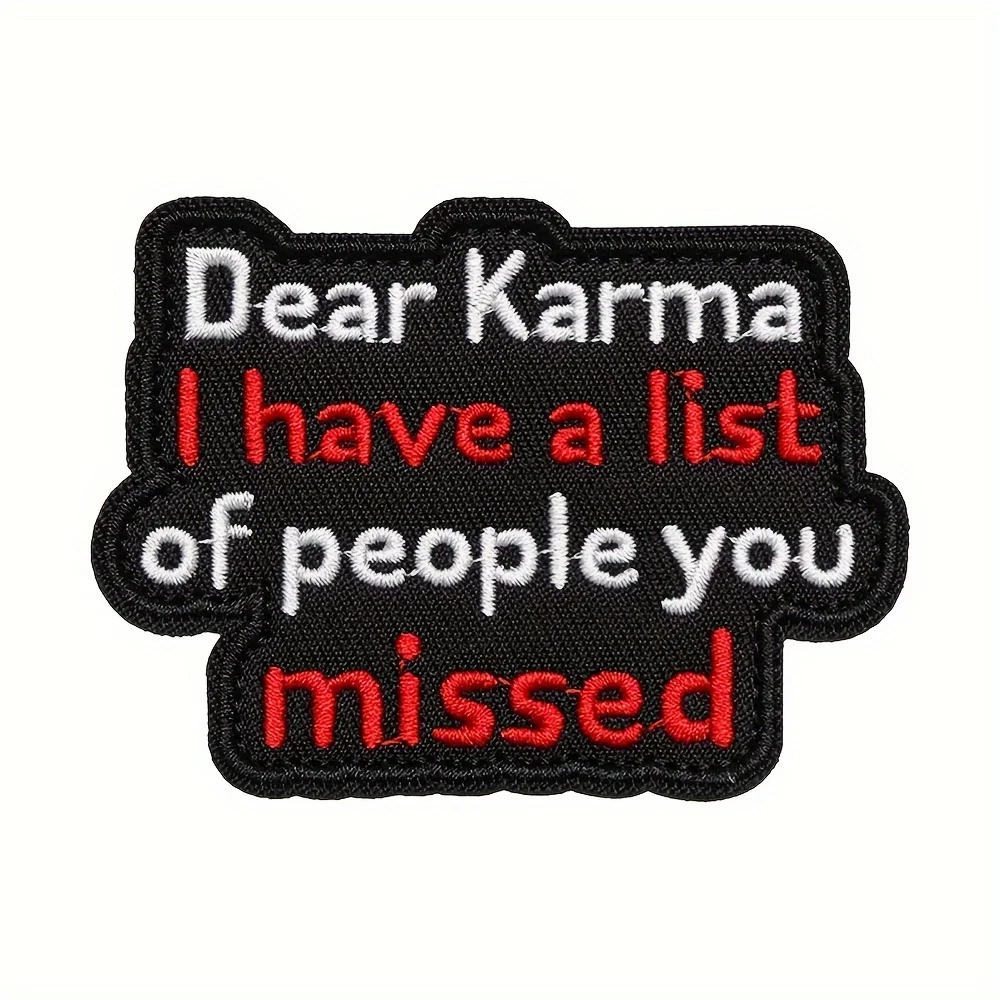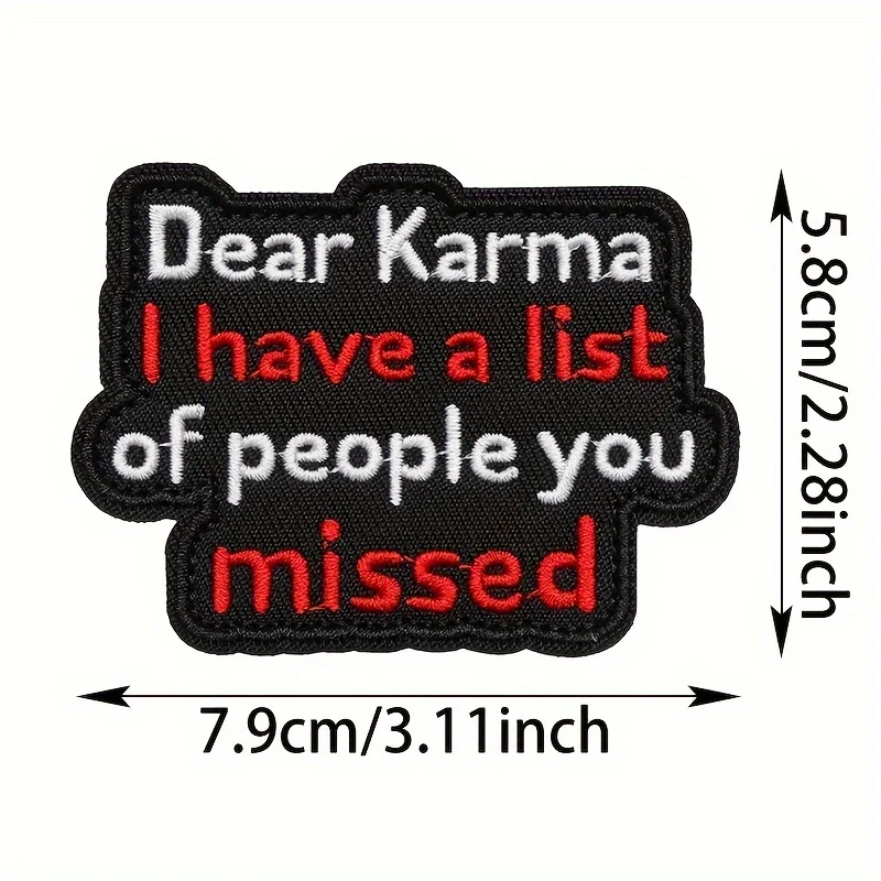 DEAR KARMA Divertido Meme Velcros Parche Etiqueta de cierre de gancho y bucle - Insignia bordada militar táctica para mochila Molle
