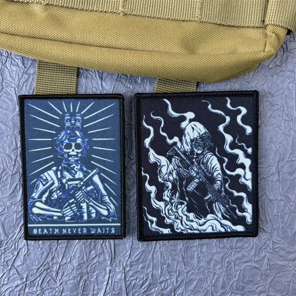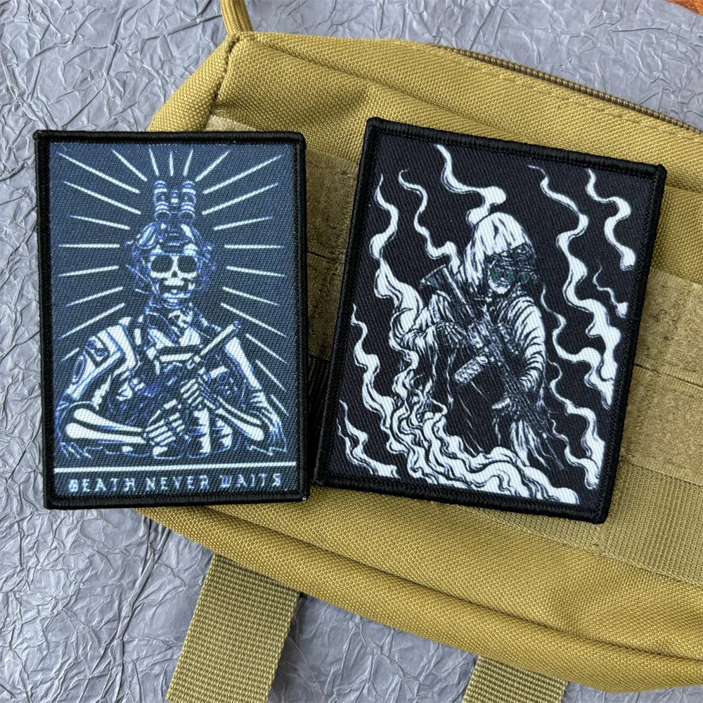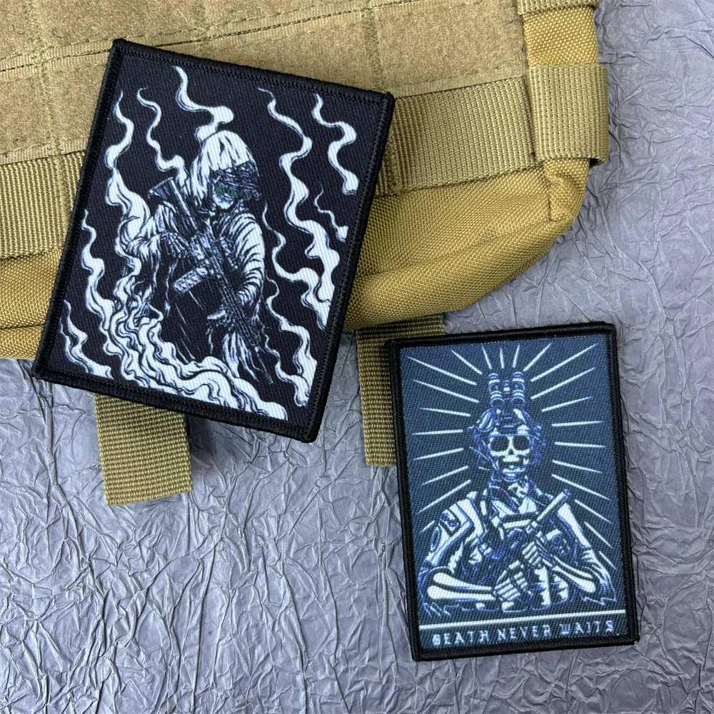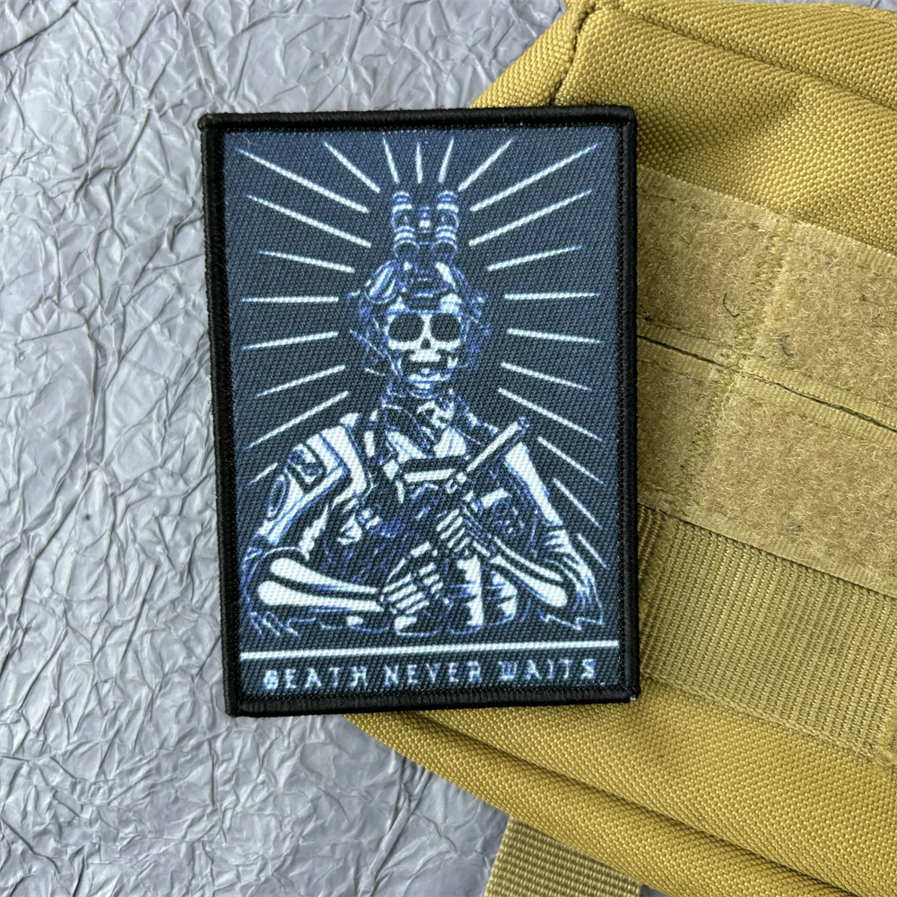 La muerte esperará parche impreso en la ropa insignia de moral equipo táctico gancho y bucle parches militares apliques de mochila