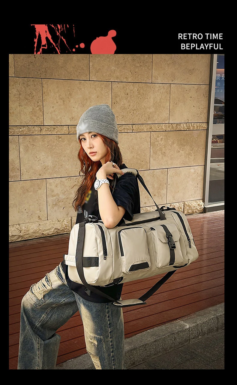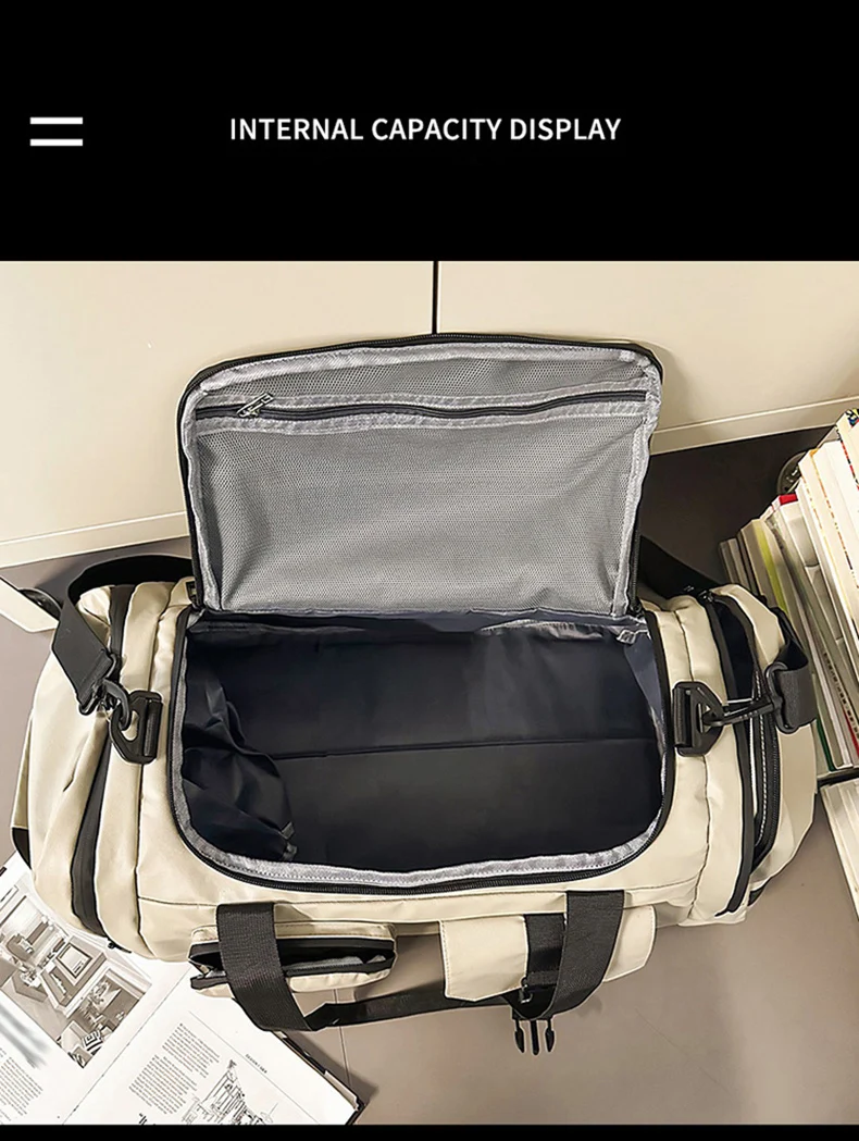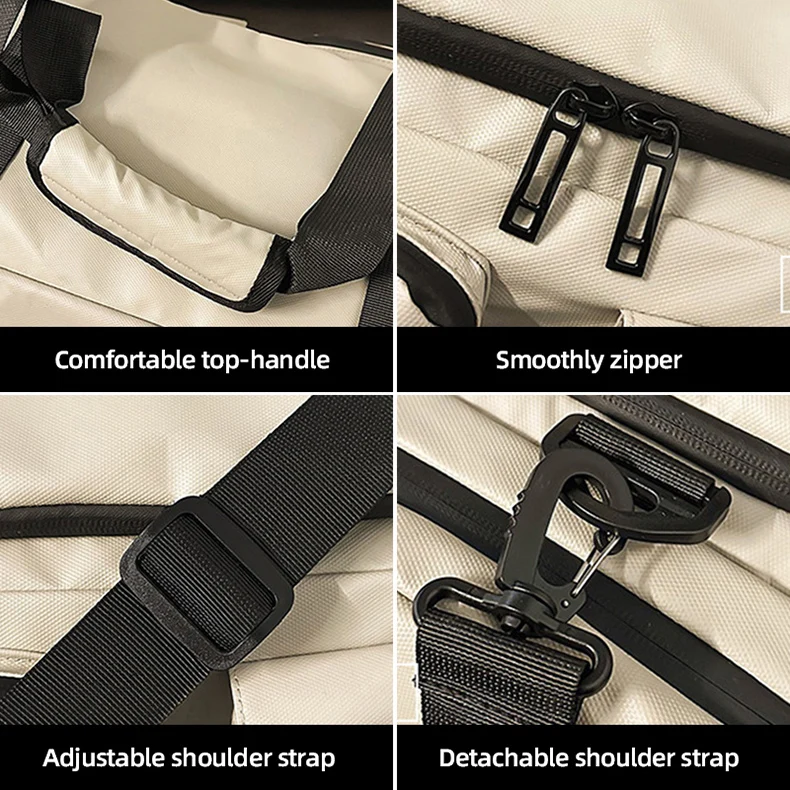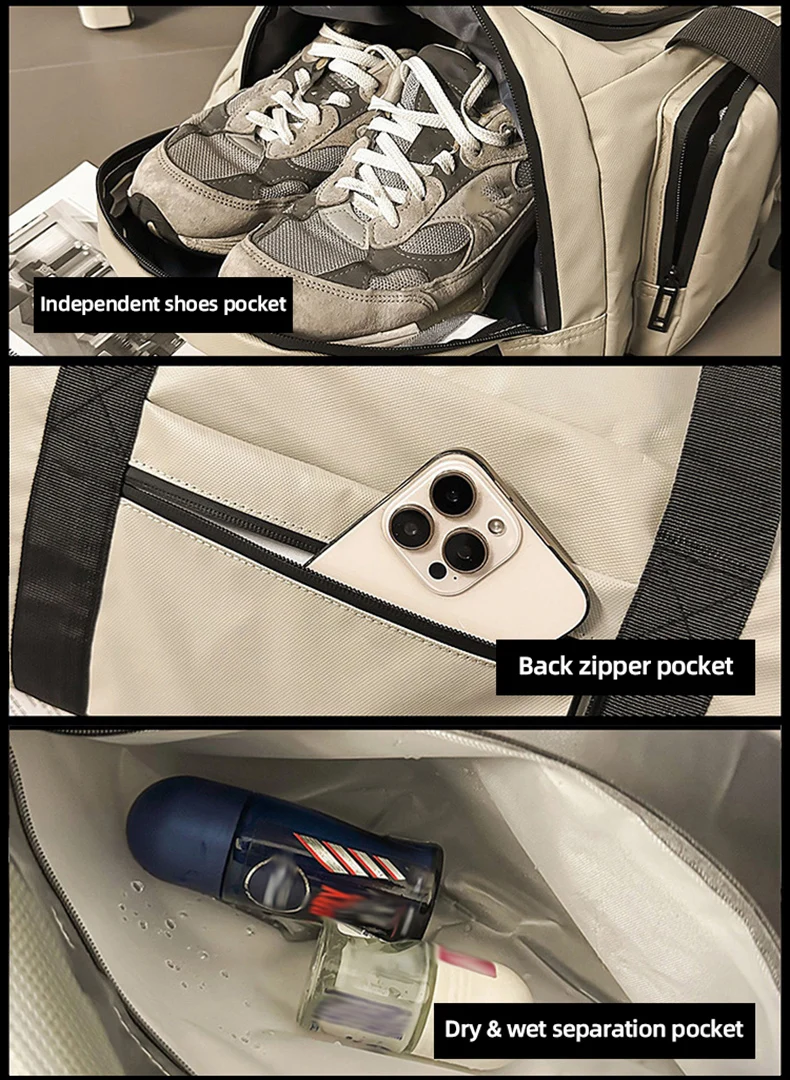 1.Detalles del producto: Cremallera suave; diseño de bolsillo para zapatos separado; correas de hombro ajustables