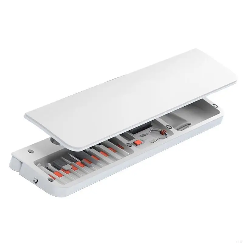 Cuenta con cepillos y paños de microfibra especializados para una limpieza profunda de teclados mecánicos, lentes de cámaras, puertos de carga y otros dispositivos electrónicos delicados.