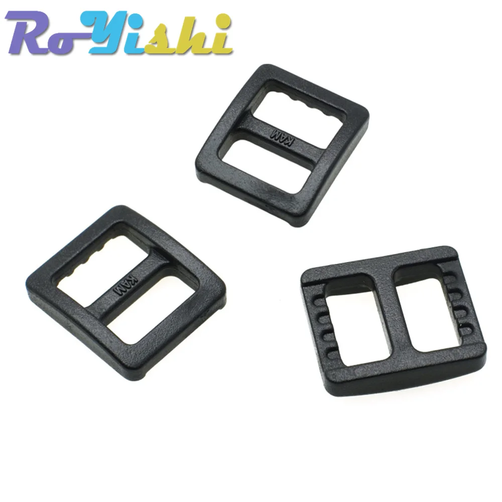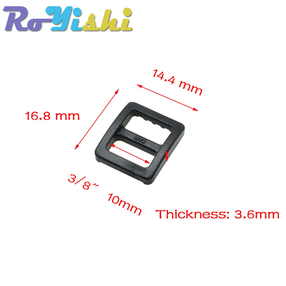 Deslizador de plástico de 100 pulgadas, hebillas ajustables trideslizantes, correas de mochila, 10mm, color negro, 3/8 unids/lote por paquete