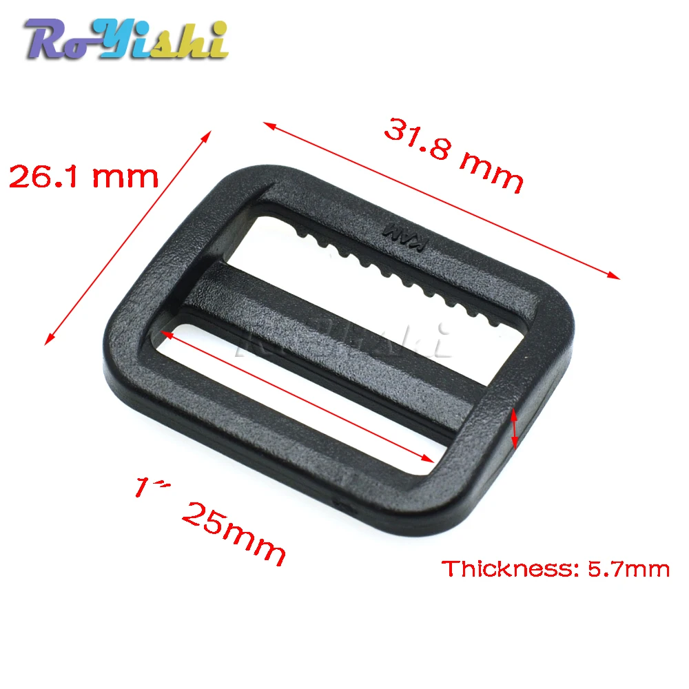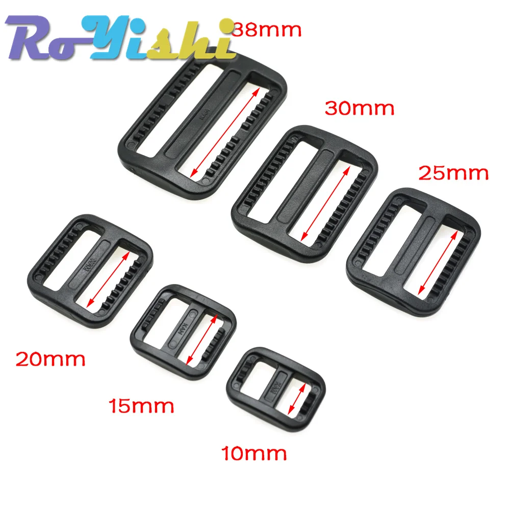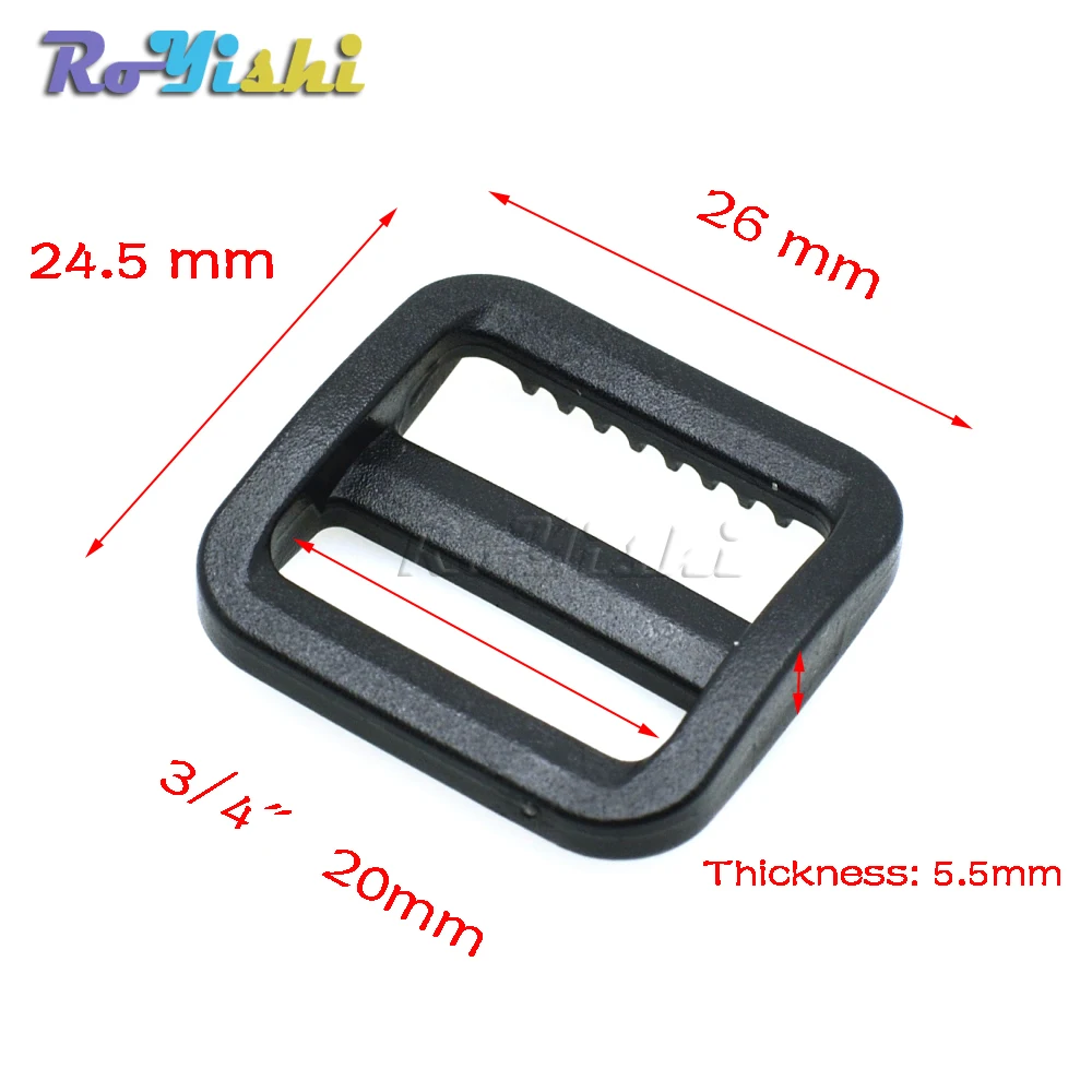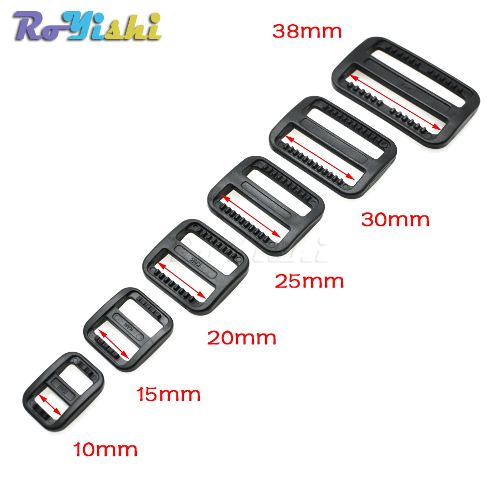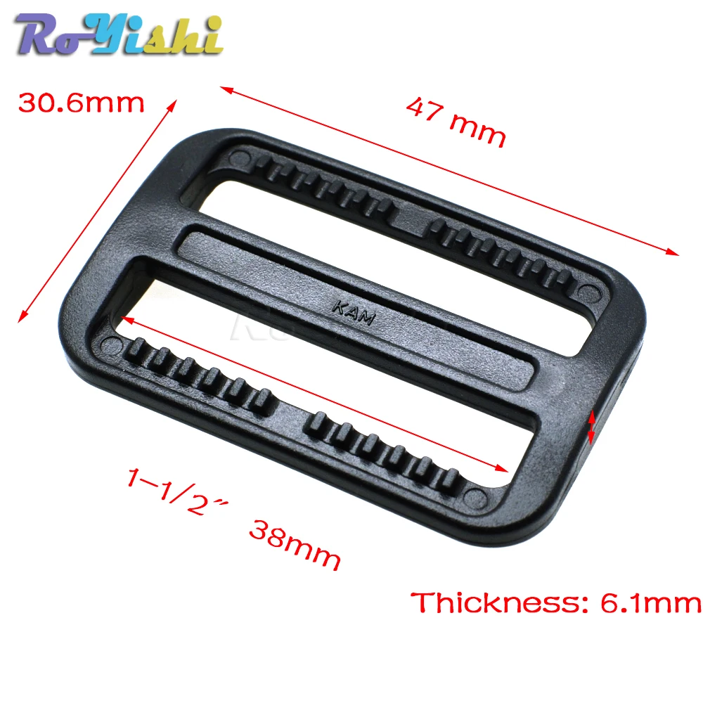Deslizador de plástico triple Glide, hebillas ajustables, correas de mochila de estilo más ancho, color negro, 10 unids/lote por paquete