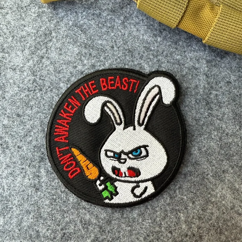 “¡No despiertas la bestia! Parche táctico de conejo, insignia de moral bordada, parche militar de gancho y bucle para apliques de mochila