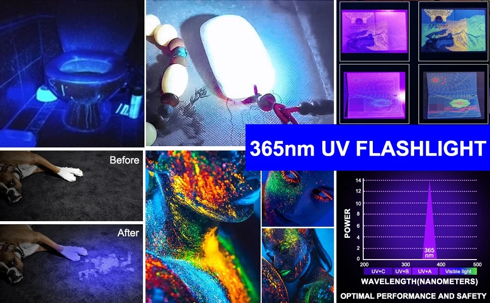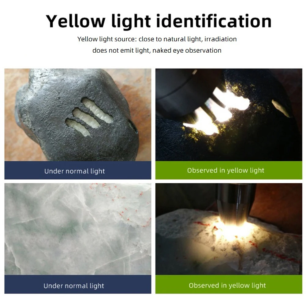 Modo de trabajo: 3 MODOS: Luz blanca - luz amarilla - luz UV de 365 NM
