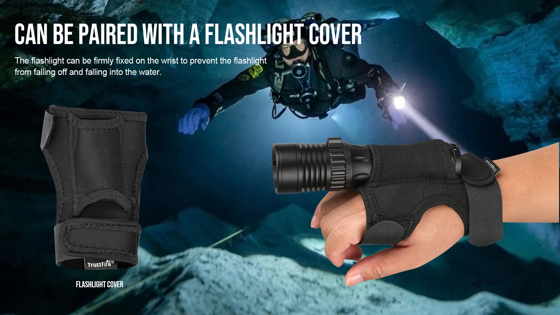 The flashlight can be firmly fixed on the wrist to prevent it from falling off and falling into the water.