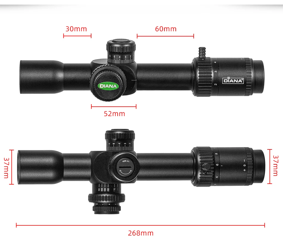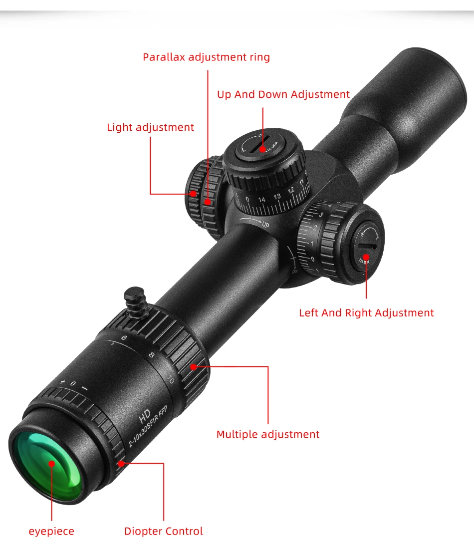 DIANA 2-10X30 FFP primer plano Focal alcance paralelo lateral 1/4 MIL SR1 retícula táctica caza Riflescope Luneta CQB AR.338.556
