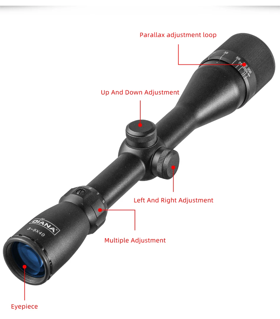 DIANA 3-9X40 AO mira telescópica táctica vidrio grabado Crosshair retícula aire francotirador caza Rifle alcance con soportes gratis nuevo