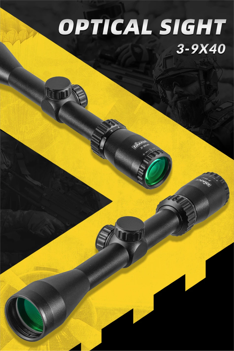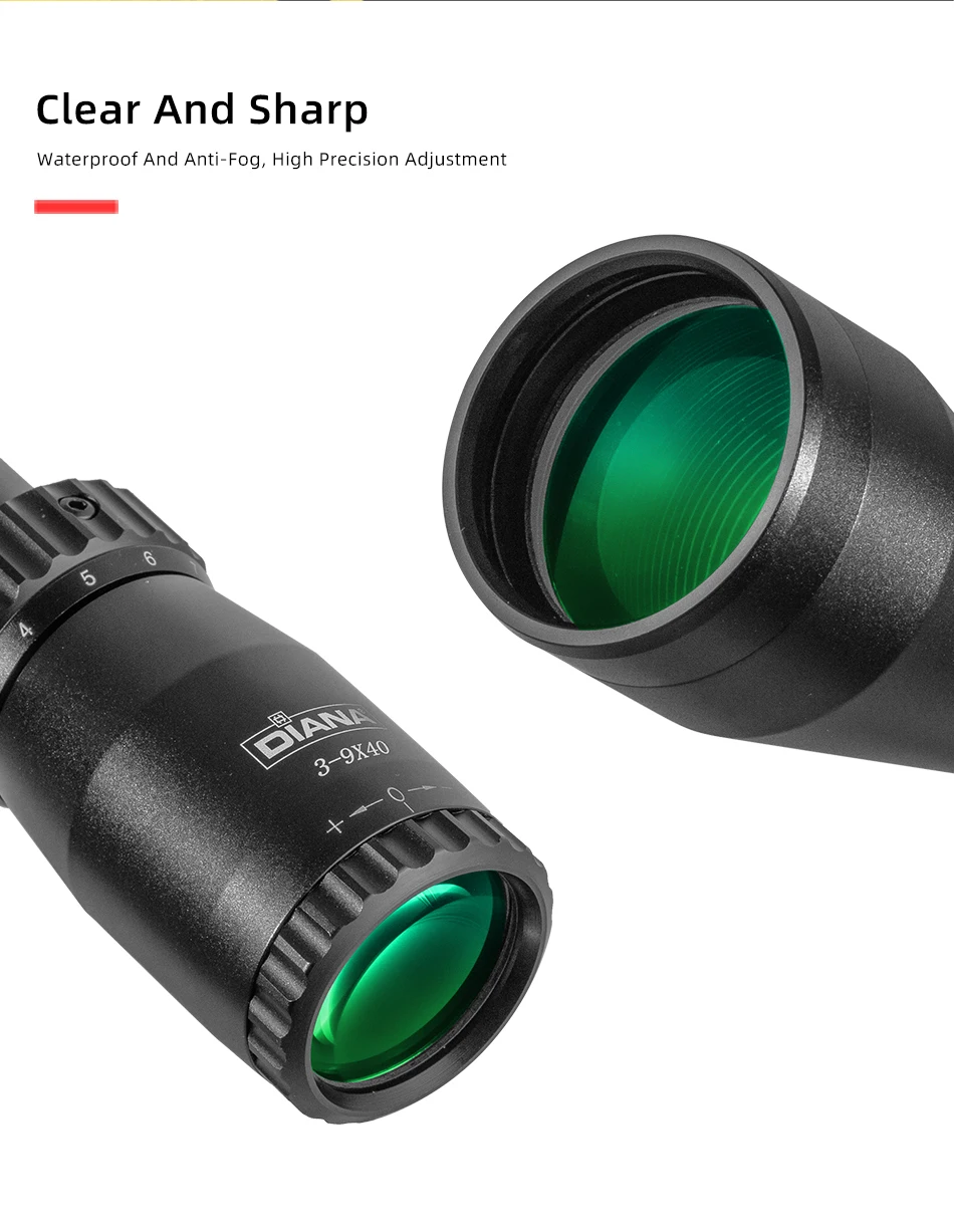 DIANA 3-9X40 mira telescópica de caza retícula dúplex mira táctica para Rifle cruzado para caza de buena calidad