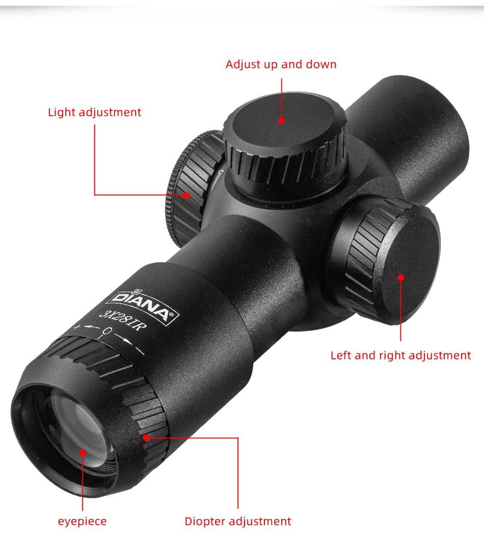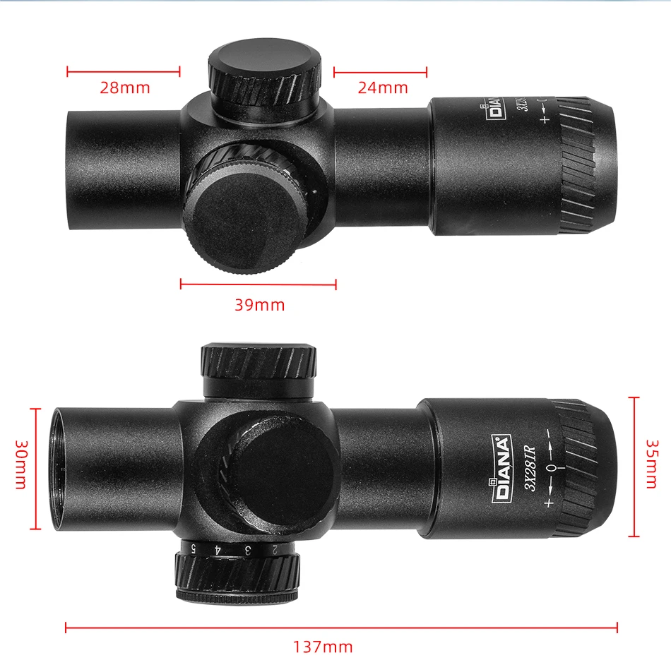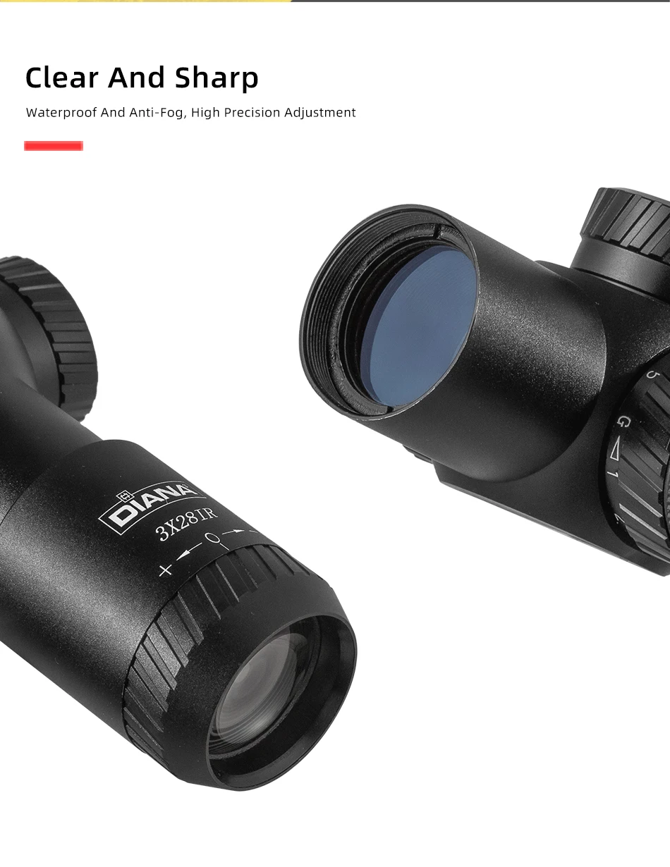 DIANA 3X28 táctico caza Rifle alcance Airsoft PCP Riflescope tiro al aire libre deportes francotirador vista óptica armas montaje nuevo