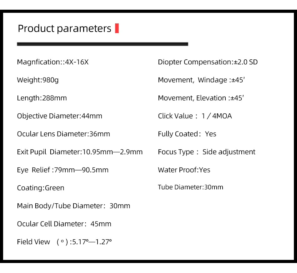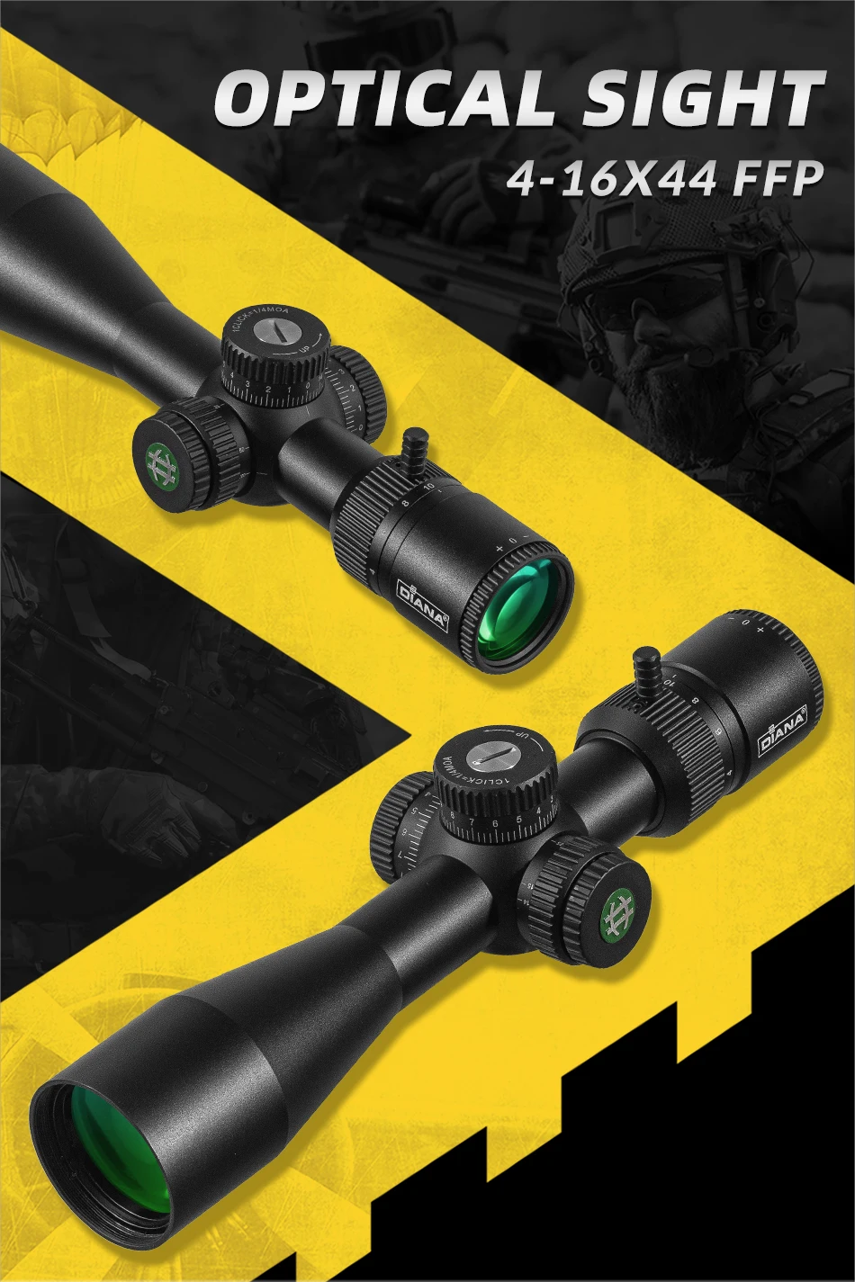 DIANA ED-MIL 4-16x44 FFP alcance compacto primer plano Focal miras ópticas tácticas nuevas mira telescópica de caza con iluminación
