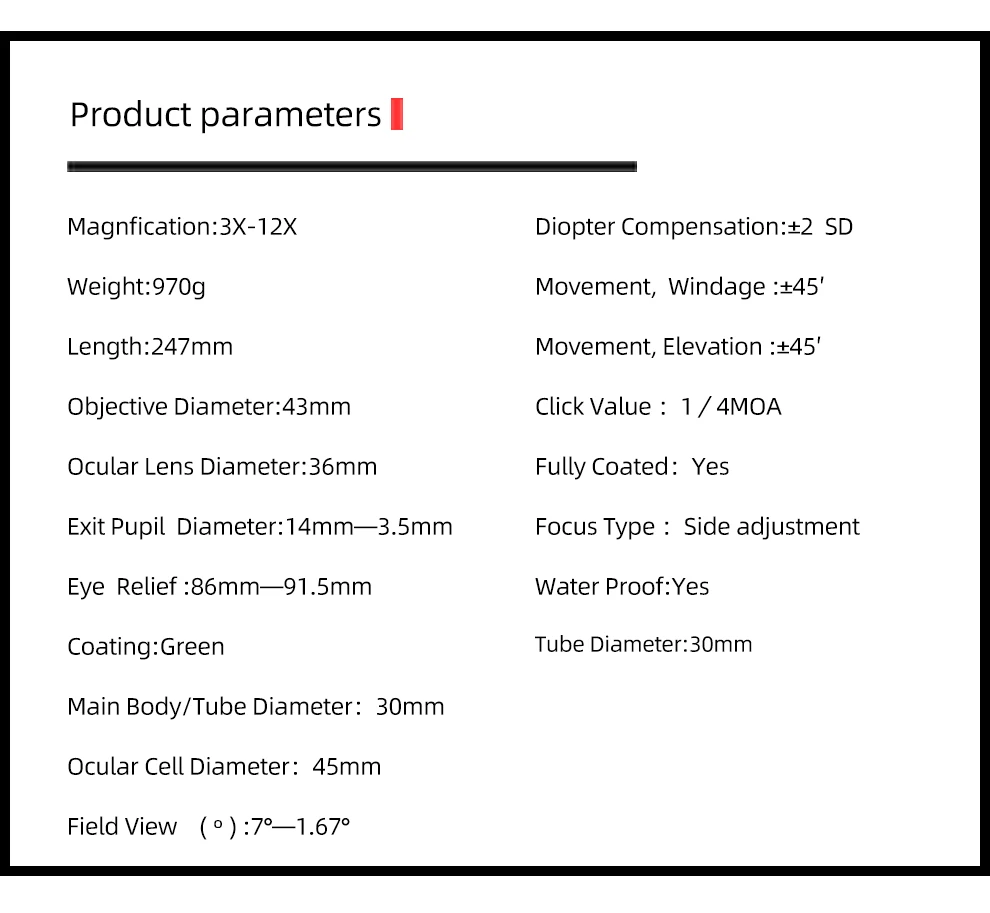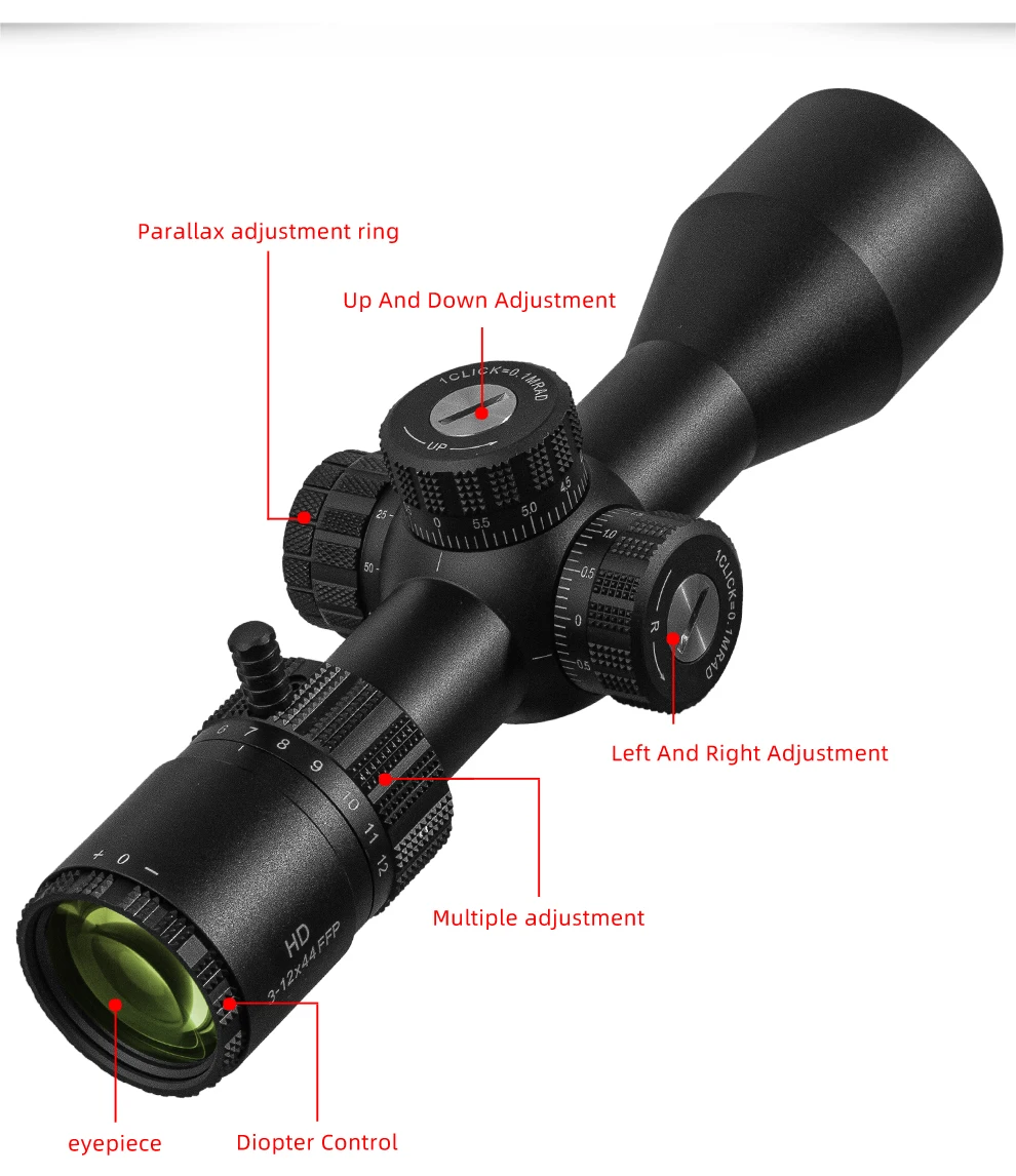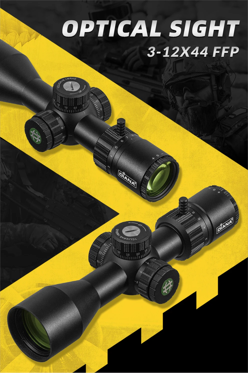DIANA HD ED-MOA 3-12X44 FFP alcance primer plano Focal mira telescópica táctica R & G mira de retícula iluminada 2026