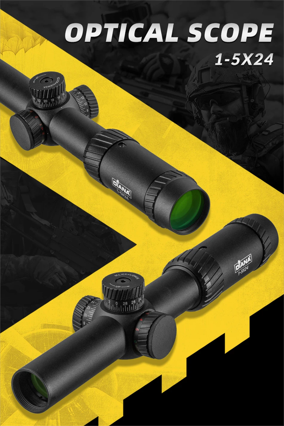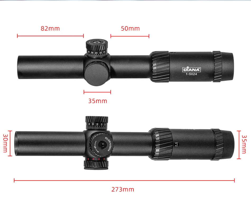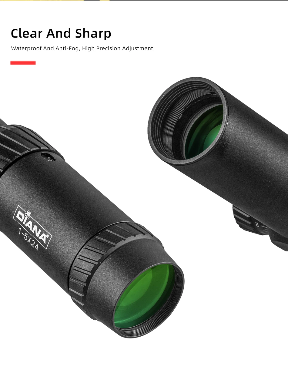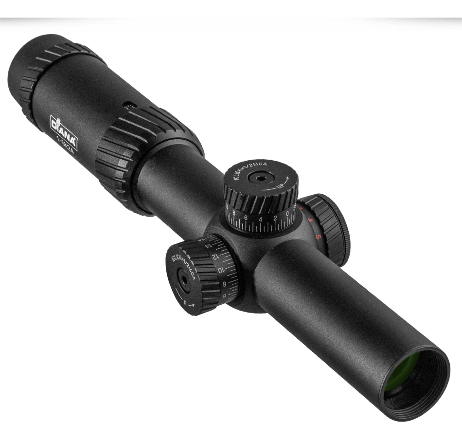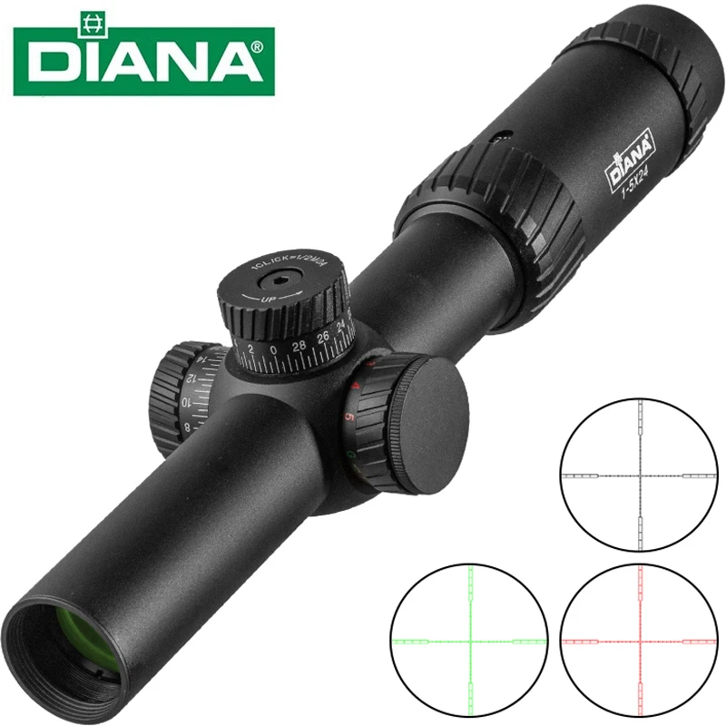 DIANA-mira óptica táctica para Rifle de caza, 1-5X24, con torreta cruzada iluminada en rojo y verde, alcance de bloqueo, espejo Airsoft