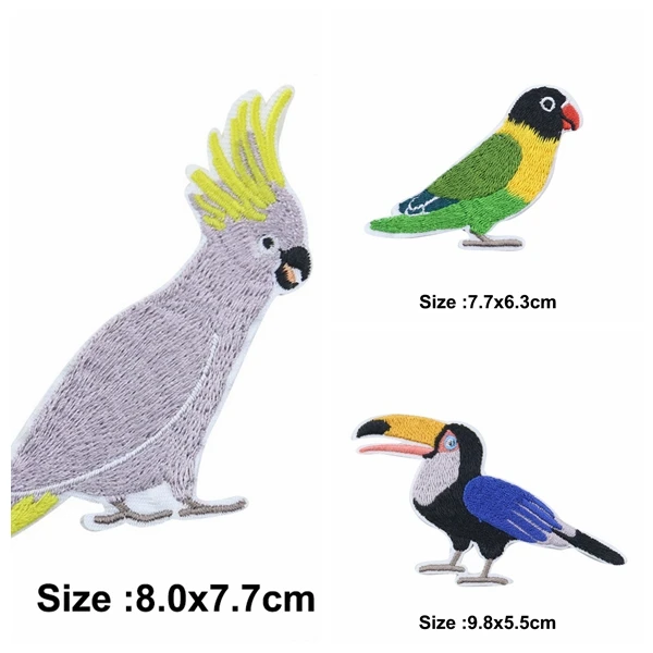 Ropa de dibujos animados Diy para niños, parche bordado de pájaro y loro, parches de hierro, sombrero, mochila, pegatinas decorativas