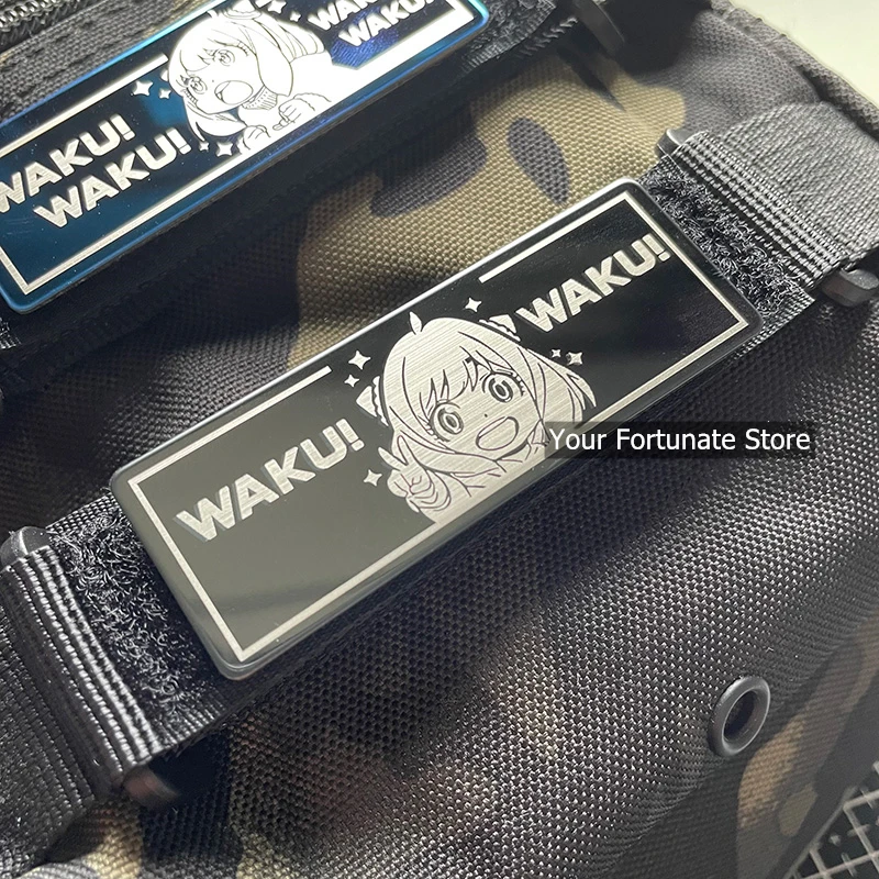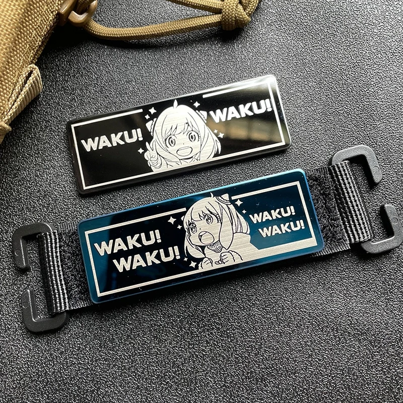 Dibujos animados espía familia Waku bidimensional hermosa chica Anime táctico DIY parche de Metal Base de bucle para decoración de mochila