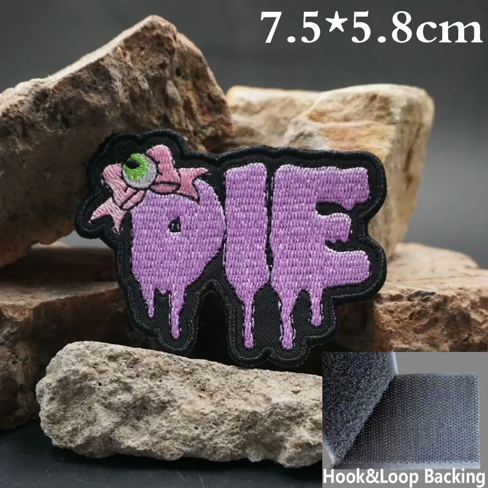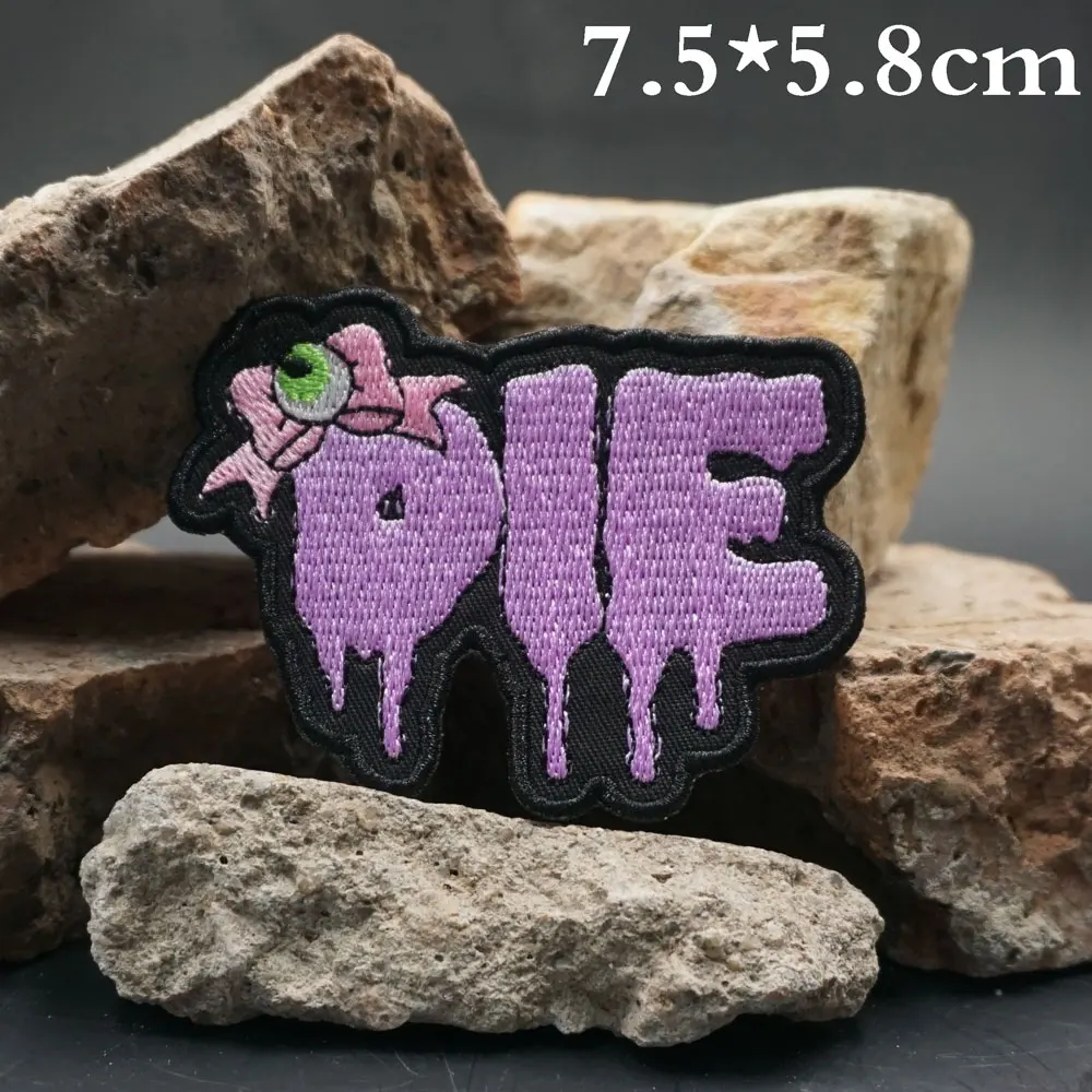 Die Aesthetic-Aplique de parche bordado gótico Pastel, etiqueta de costura, banda de motorista punk, insignias de tela de Rock con respaldo de gancho