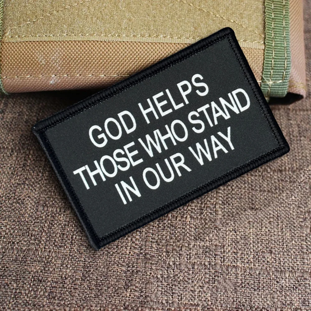 Dios ayuda a ese, mucho esta en nuestra manera, parche táctico de moral, parche de gancho y bucle, insignia militar Chevron, brazalete, pegatinas para mochila