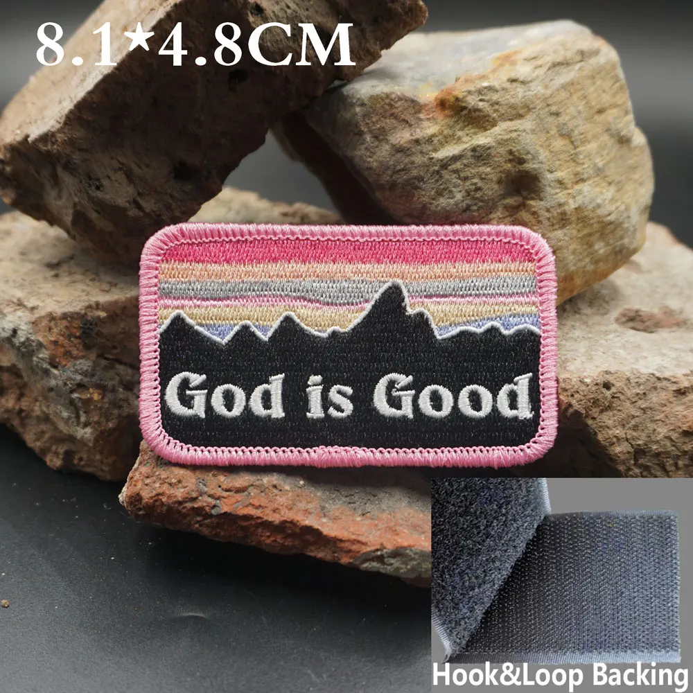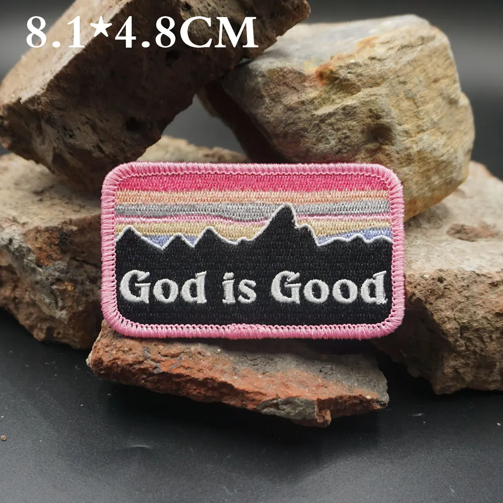Dios es bueno parches bordados apliques etiqueta de costura banda de motorista punk insignia de ropa de Rock con respaldo de gancho o coser