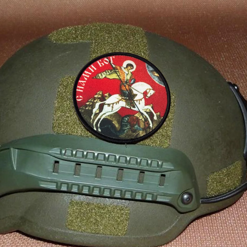 Con nosotros, parche táctico God St. George Morale, parches de gancho, insignia militar, pegatinas para mochila Chevron, apliques, accesorios