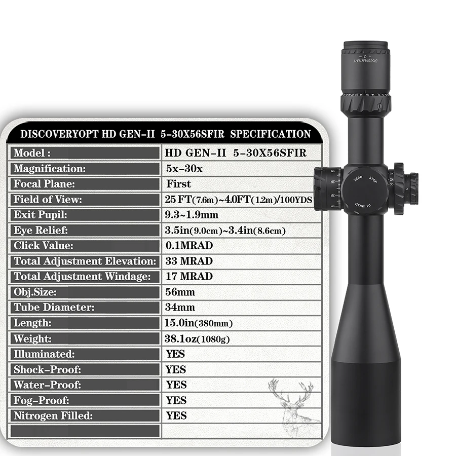 Discovery HD GEN-II 5-30X56SFIR FFP primer plano Focal mira telescópica 34mm tubo mira telescópica militar con iluminación