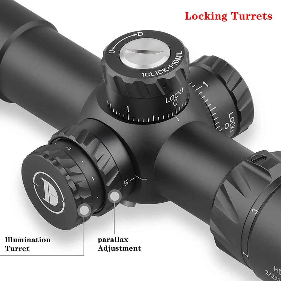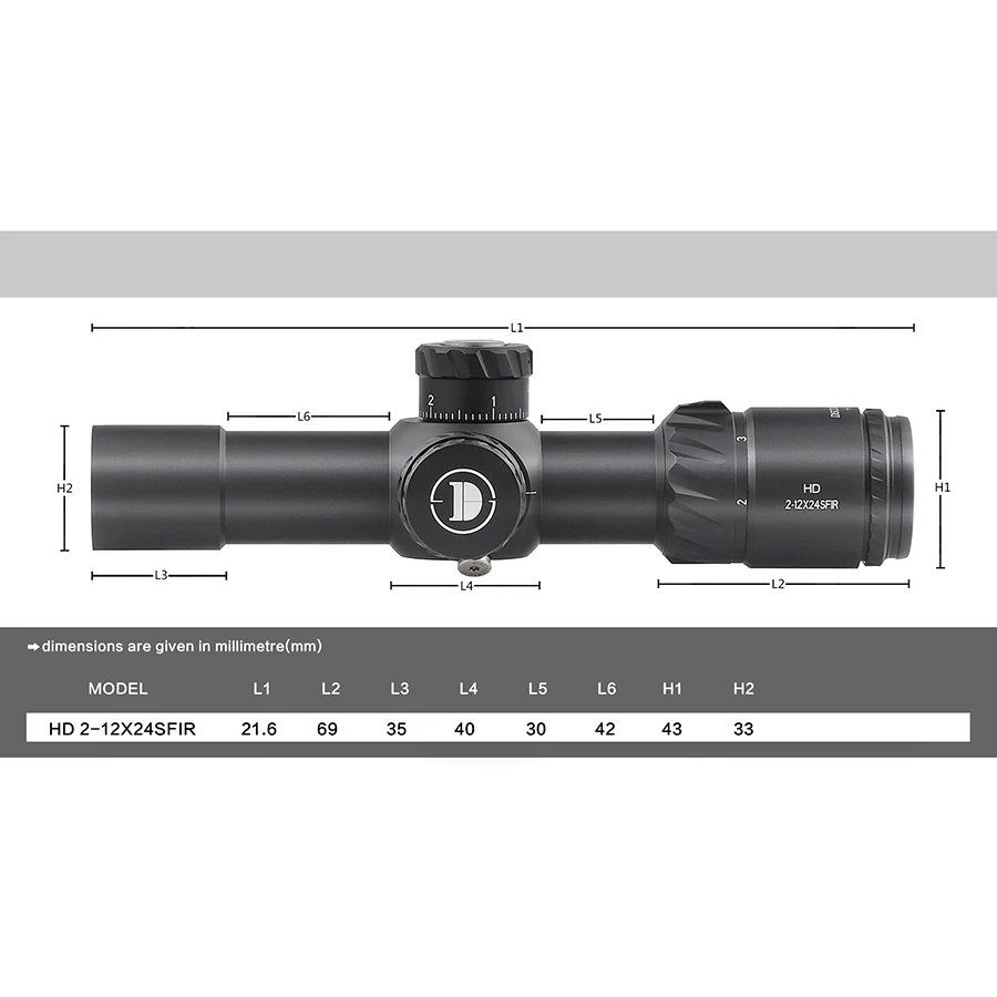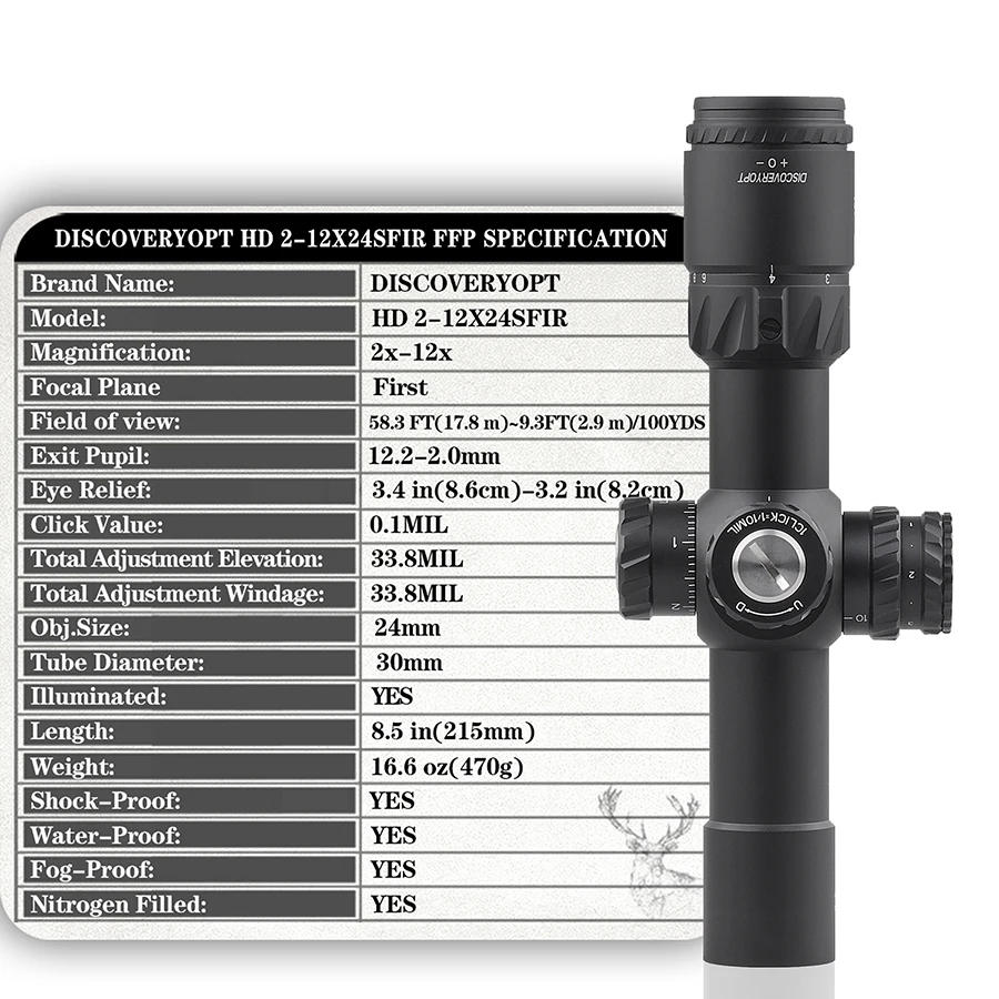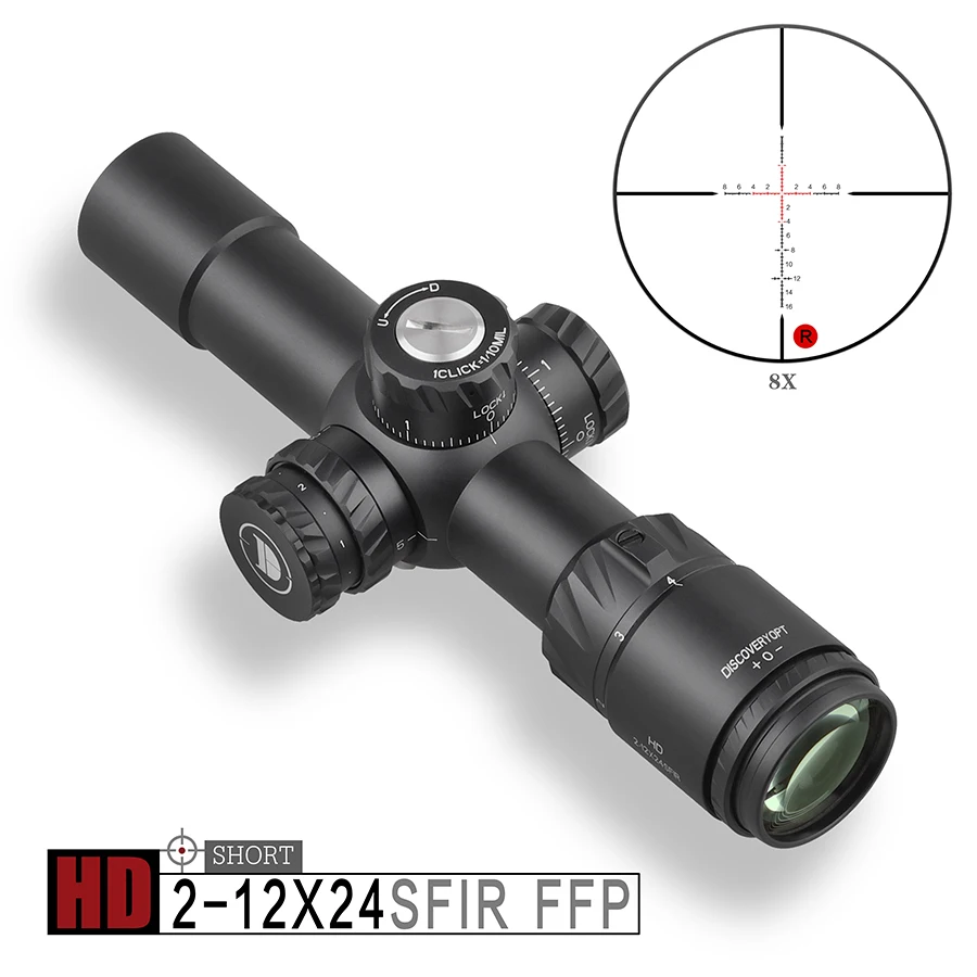 Discovery HD2-12X24SFIR mira telescópica compacta primer plano Focal iluminado vidrio grabado tiro caza uso del ejército