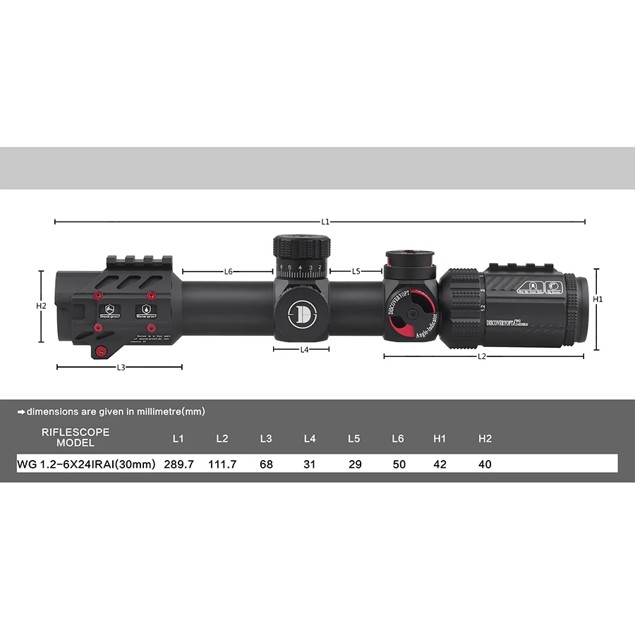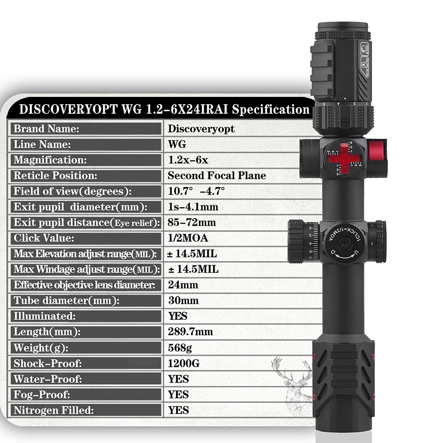 Discovery WG 1,2-6X24 IRAI mira compacta a prueba de golpes mira telescópica táctica de caza 30mm tubo óptico mira para aire suave. 388
