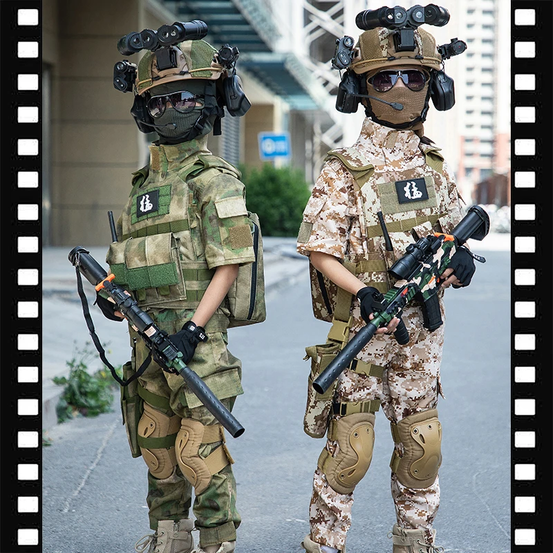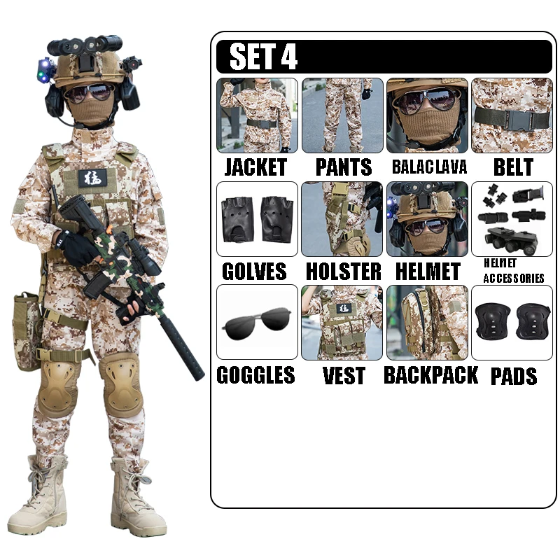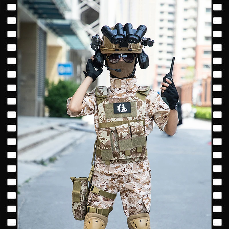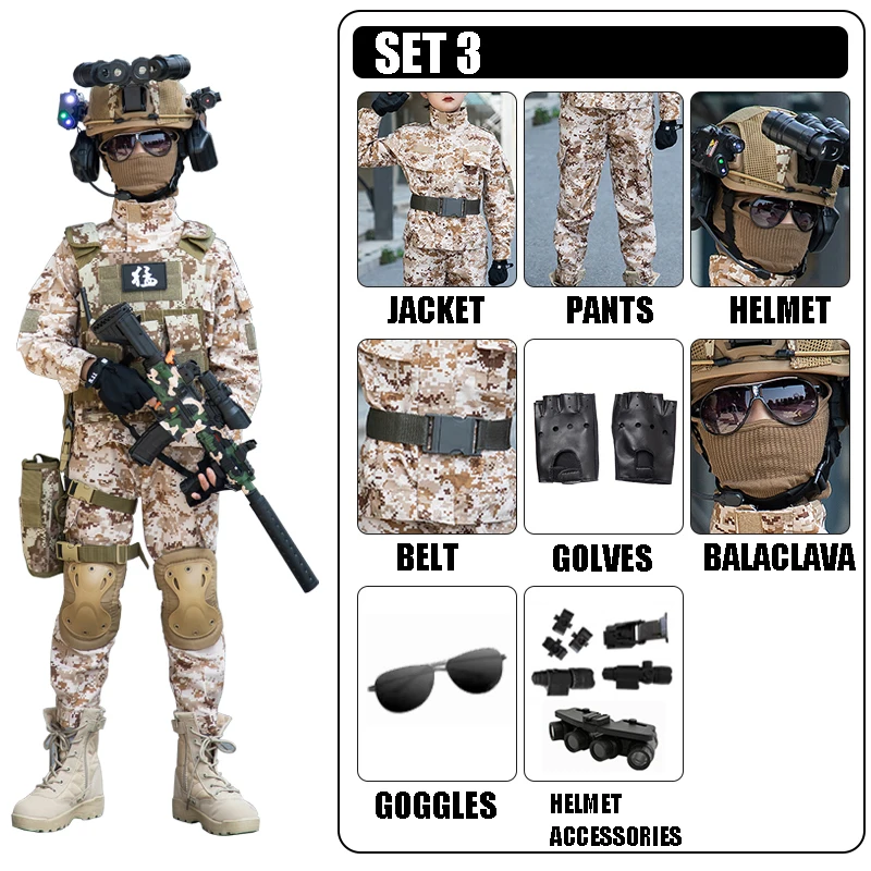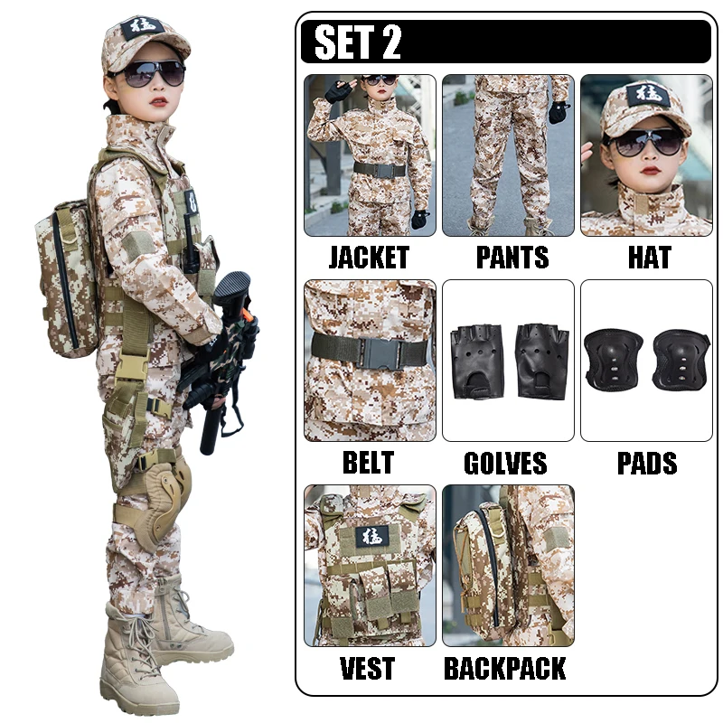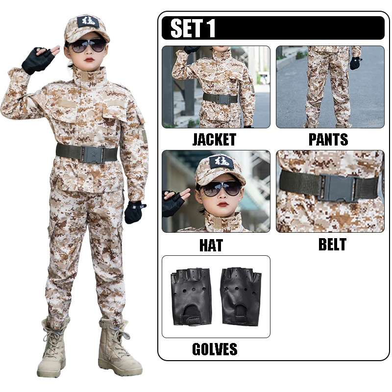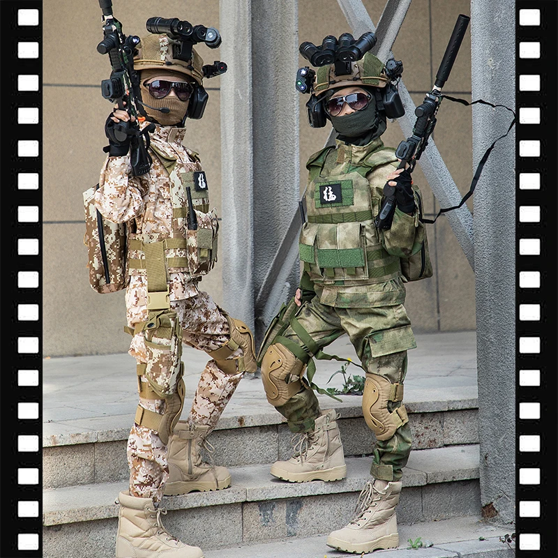 Disfraz del ejército de camuflaje de arena para niños, traje de soldado para niños, disfraz de fuerzas especiales para niños, conjunto de uniforme de entrenamiento táctico militar