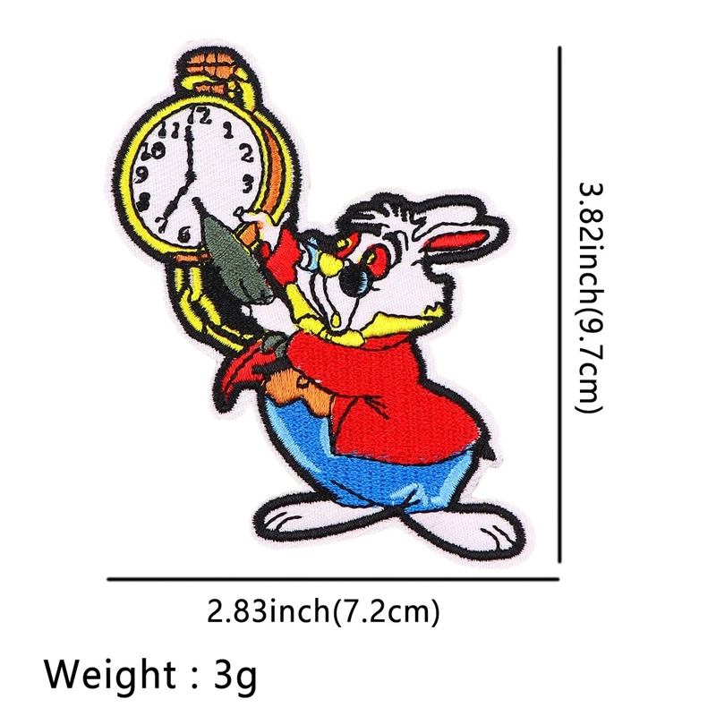 Disney aventuras de Alice en el país de las Maravillas gato maravilloso Sr. Coelho blanco planchado parches bordados parche de reparación de ropaMedición manual, hay un error de aproximadamente 2-3 milímetros. Por favor entiende.