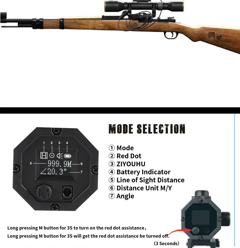 Dispositivo de alcance enchufable MINI8 de 1200m telémetro láser alcance de caza deportivo asistencia de punto rojo pantalla OLED medición de distancia/velocidad