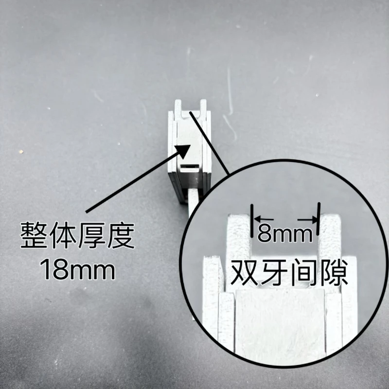 Características estructurales: Diseño de diente de doble gancho, con doble espacio entre dientes de 8 mm, se puede fijar con pernos M8;