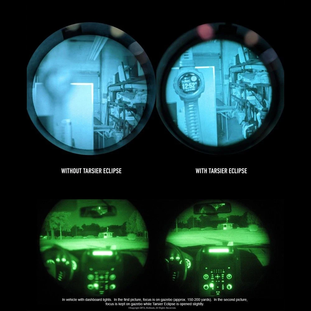 Variable infinitamente de abierto a cerrado para permitir que la cantidad óptima de luz entre en los NVG y mantener la capacidad de enfoque automático.