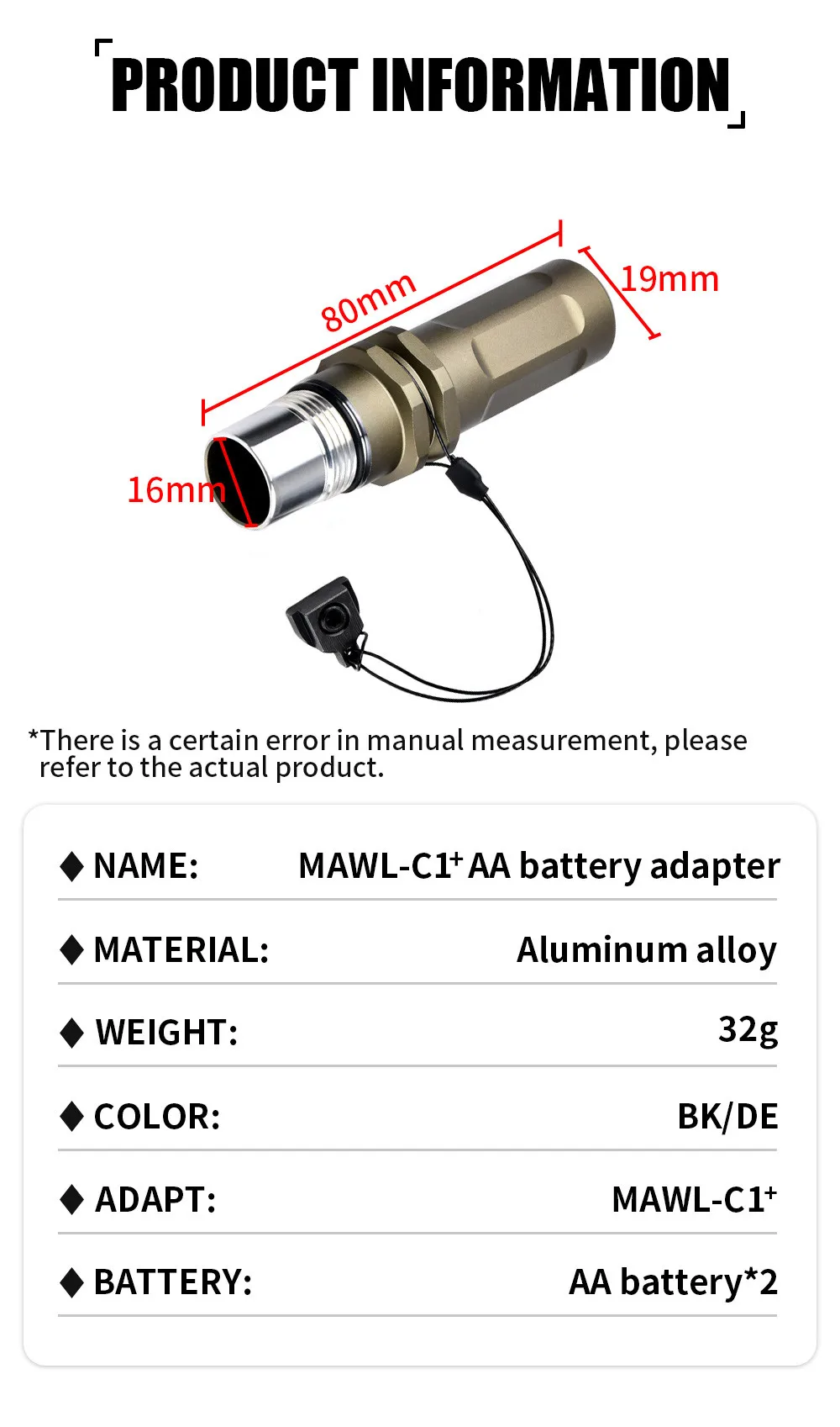 2. Amigos que ya han comprado la versión WADSN del MAWL C1 +, pueden comprar directamente esta cubierta trasera de la batería, para poder reemplazarla con 2 pilas AA para la fuente de alimentación, Y ya no necesita baterías 16340 o baterías Cr123a.