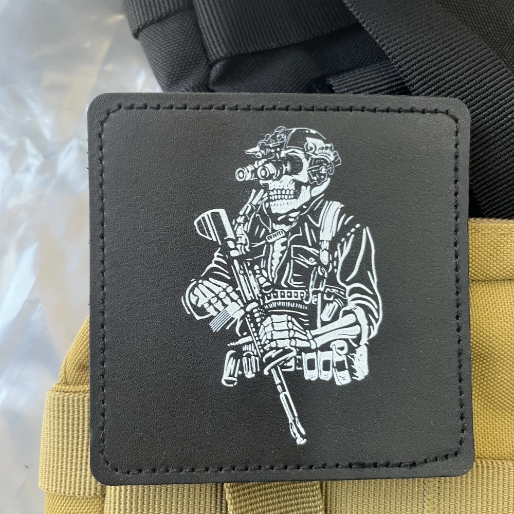 Dispositivo de visión nocturna AR, parches de soldado esqueleto, insignia de moral táctica, pegatina de impresión de gancho y bucle para mochila
