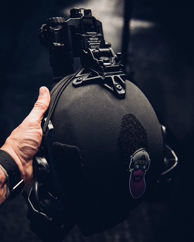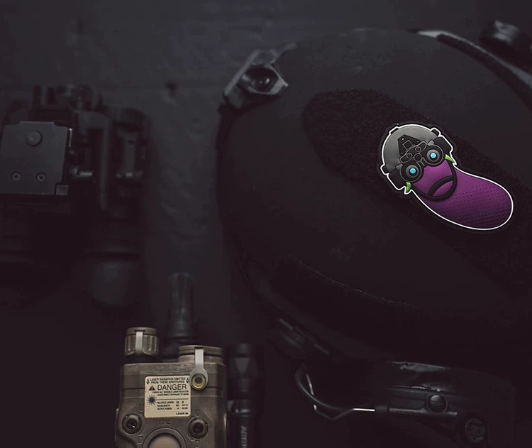Dispositivo de visión nocturna Binocular de berenjena táctica, insignia de PVC, brazalete, casco, parche